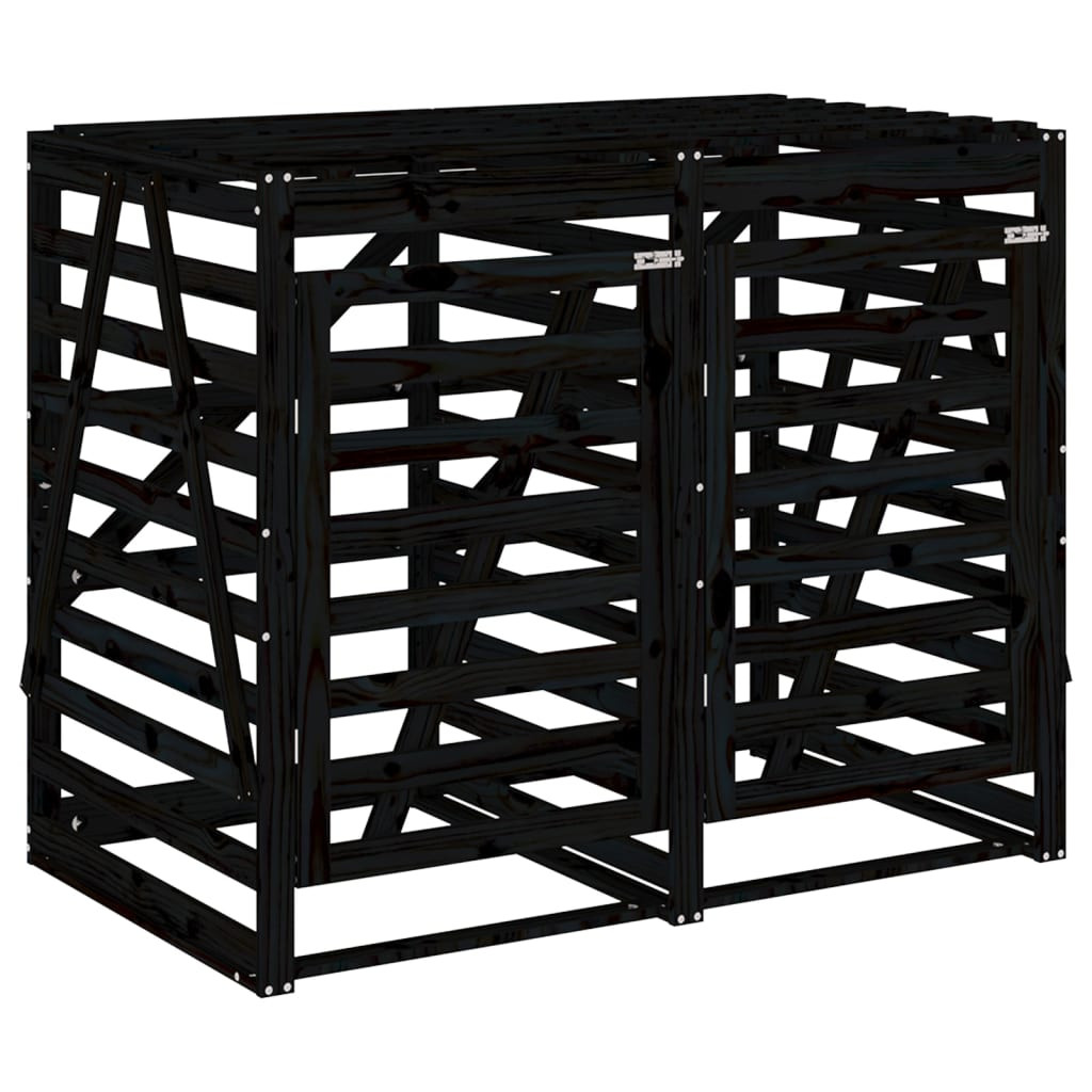 dupla fekete tömör fenyőfa görgős szemeteskuka-tároló