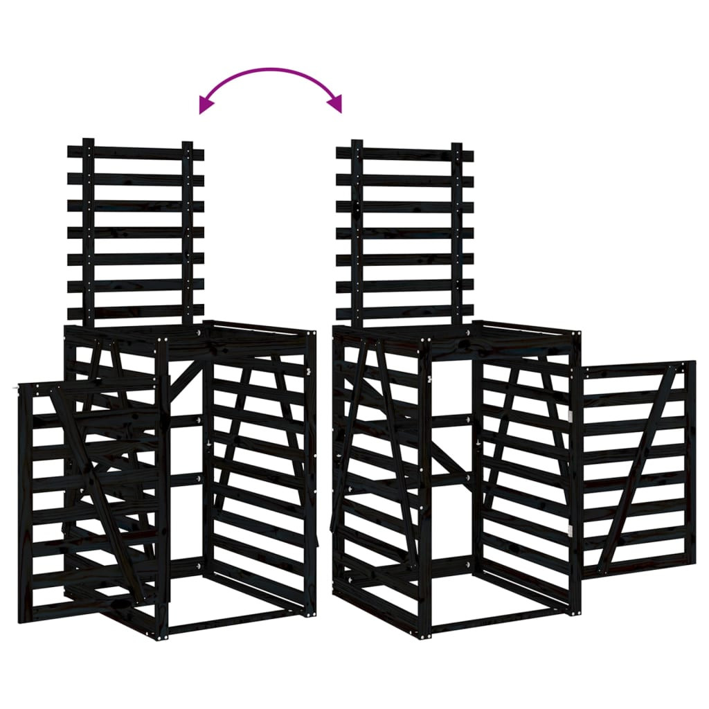 tripla fekete tömör fenyőfa görgős szemeteskuka-tároló