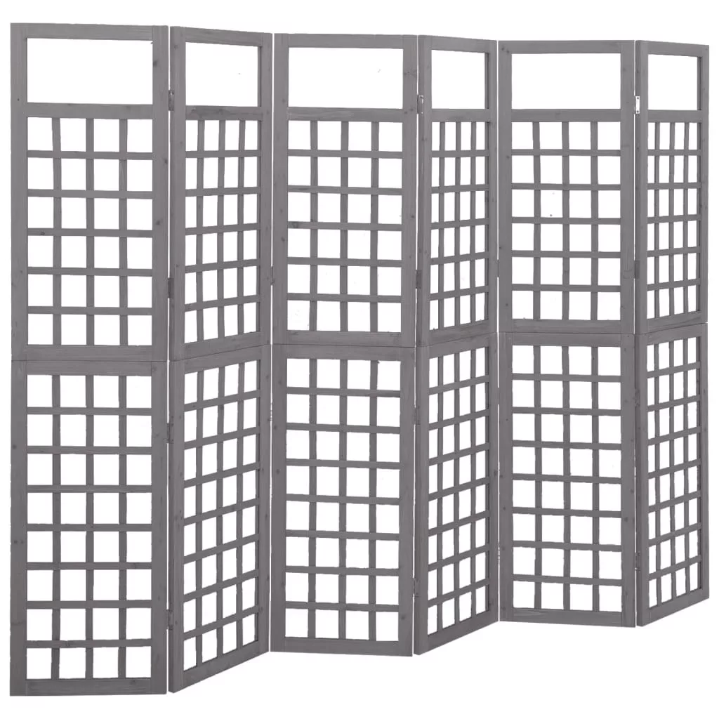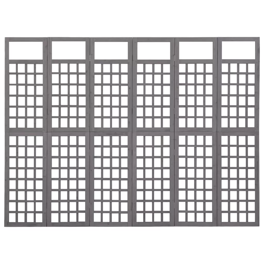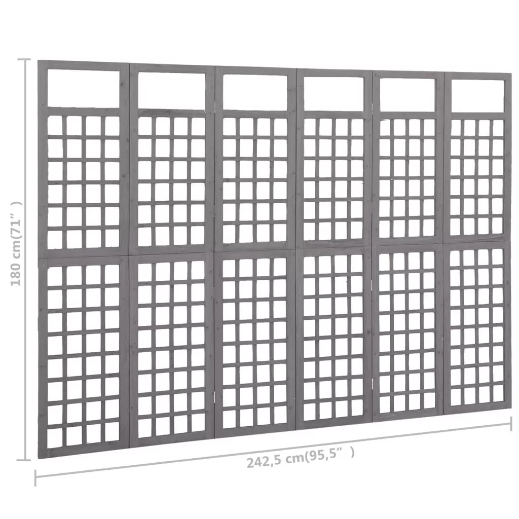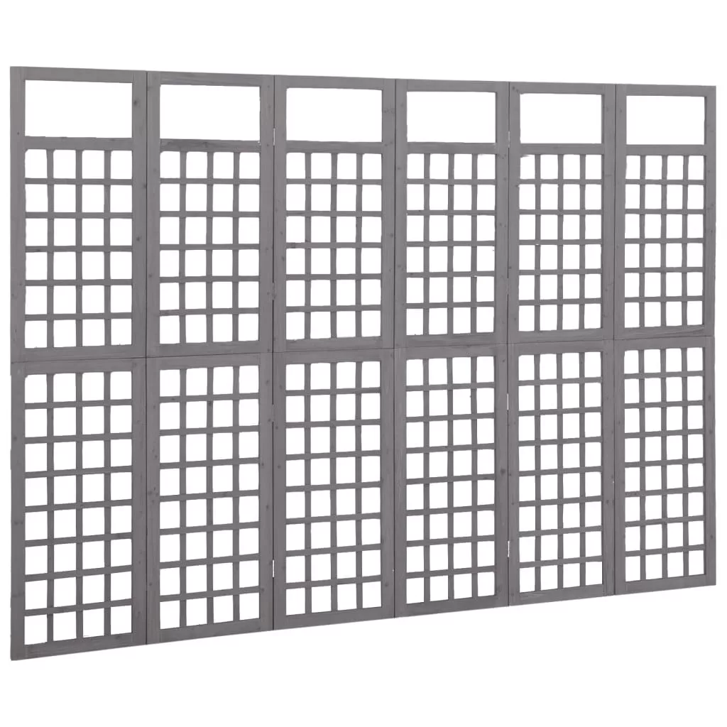 6 paneles szürke fenyőfa térelválasztó/lugasrács 242,5 x 180 cm