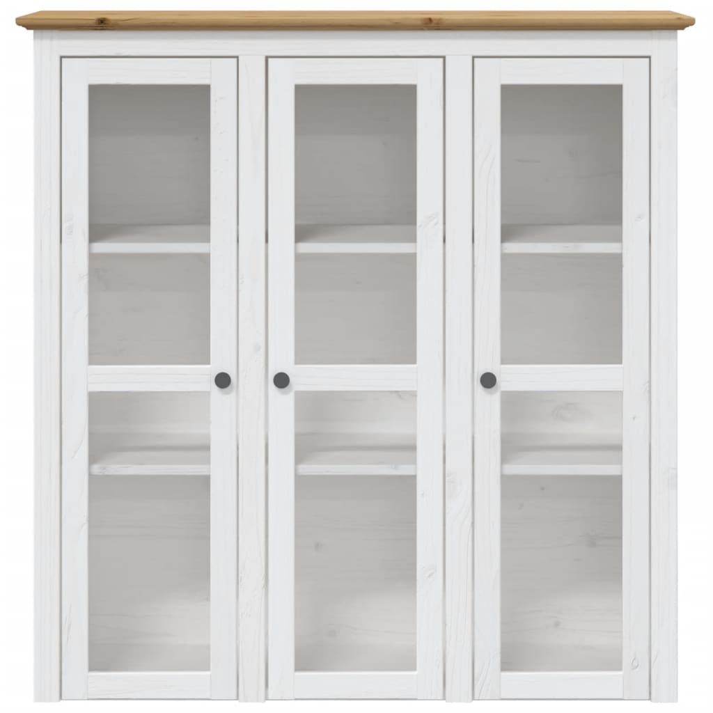 BODO fehér-barna tömör fenyőfa magasszekrény 115,5x43x200,5 cm