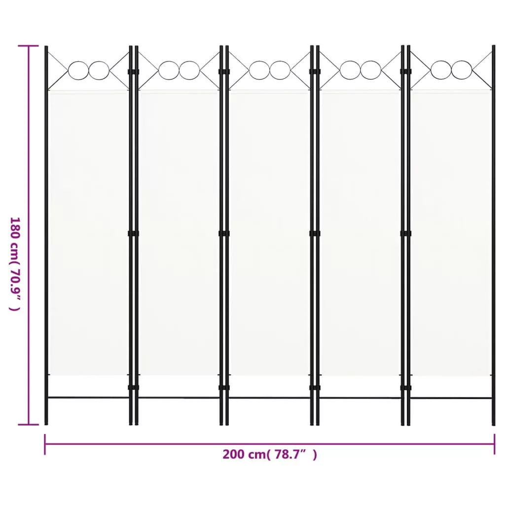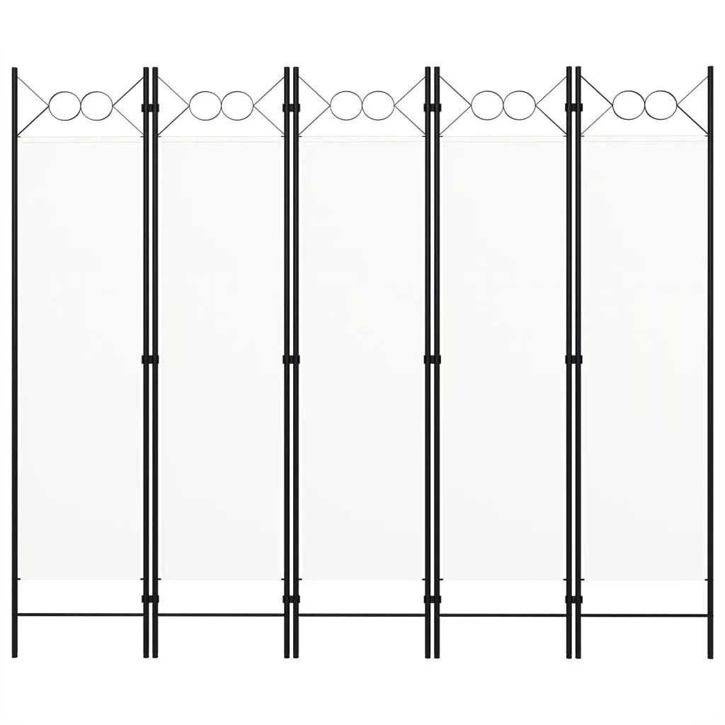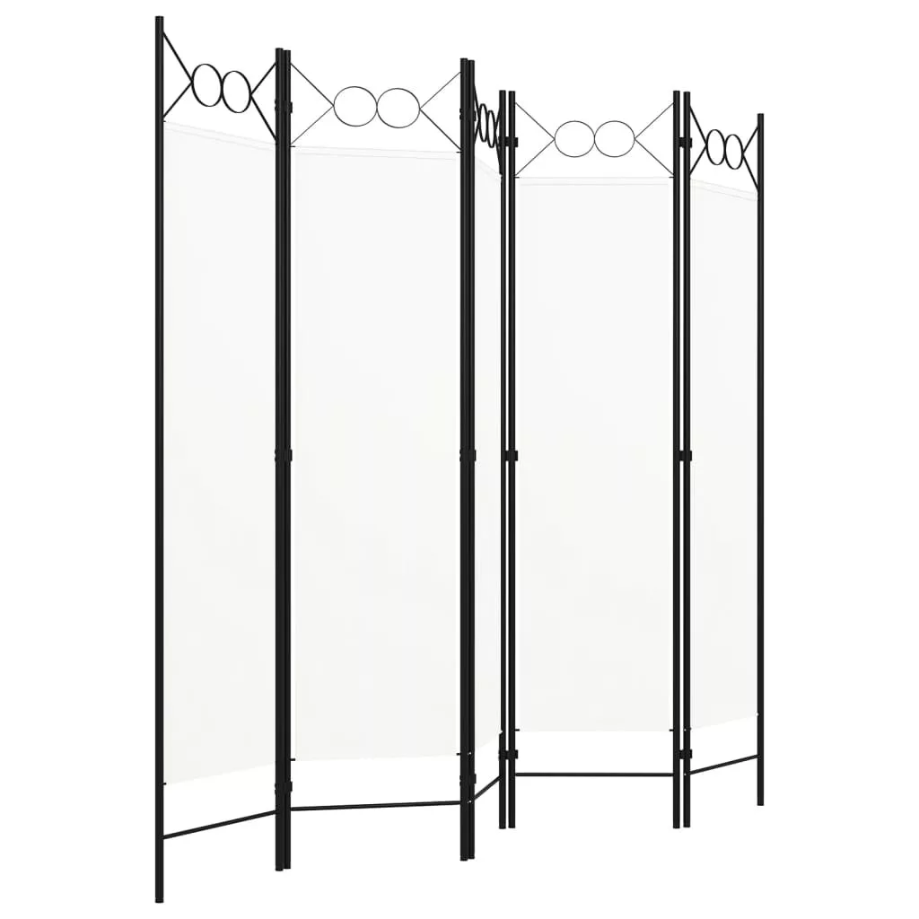 Szabadon álló és praktikus 5 paneles paravánunk tárelválasztóként vagy dekorációként is használható. Ideális magánéletet biztosít a hálószobában vagy a szoba egy részében. A körökkel díszített felső rész extra eleganciát biztosít. A paraván váza porszórt bevonatú acélból készült, a panelek pedig szövetből. Használaton kívül könnyen összecsukható. Megjegyzés: a szöveten kis mértékben áthatol a fény.