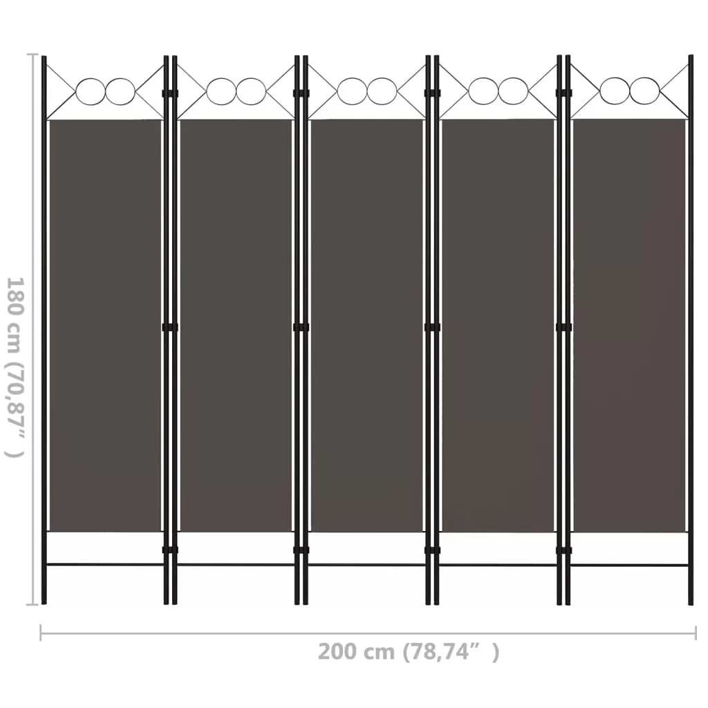 antracitszürke 5 paneles paraván 200 x 180 cm