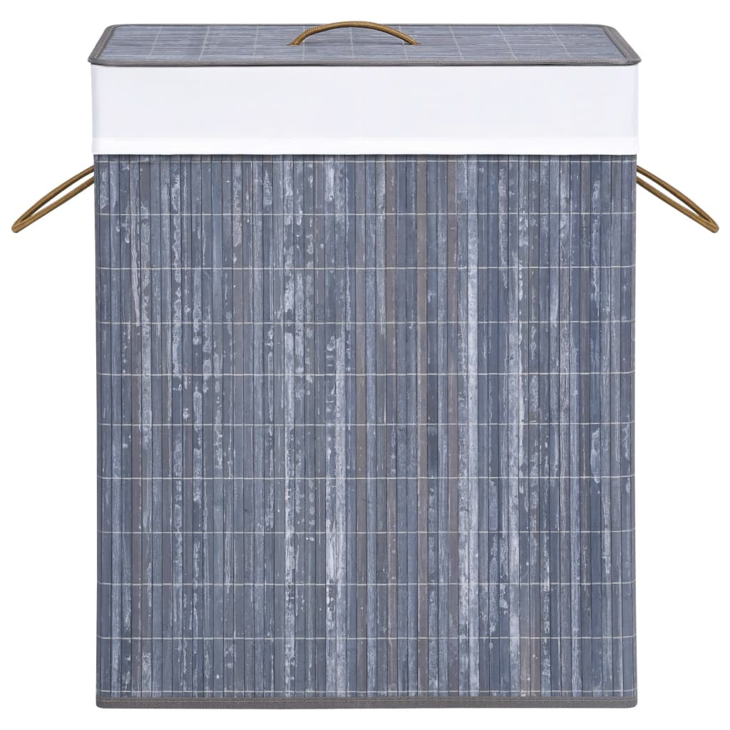 szürke bambusz szennyestartó kosár 2 résszel 100 L