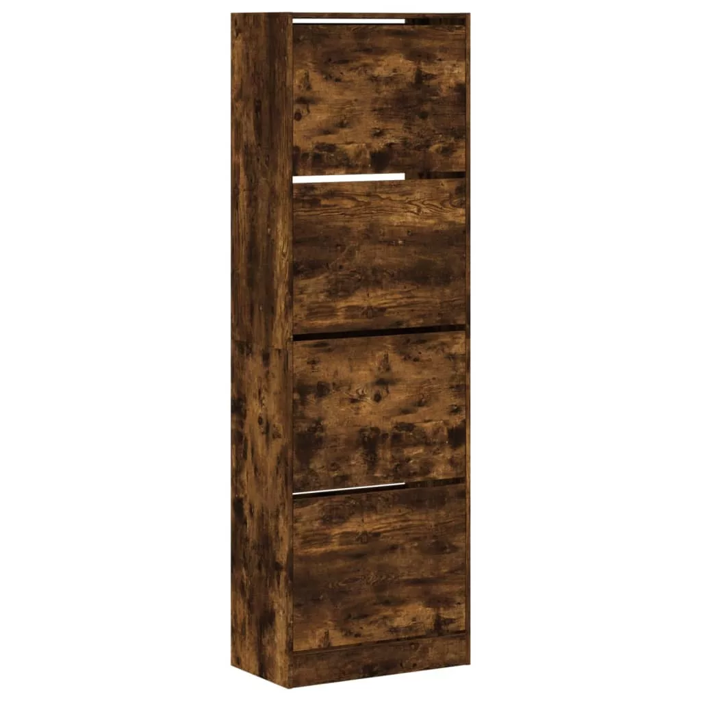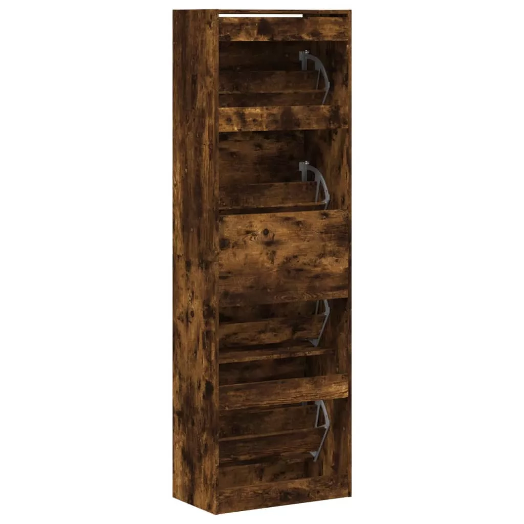 füstös tölgy cipőszekrény 4 kihajtható fiókkal 60x34x187,5 cm