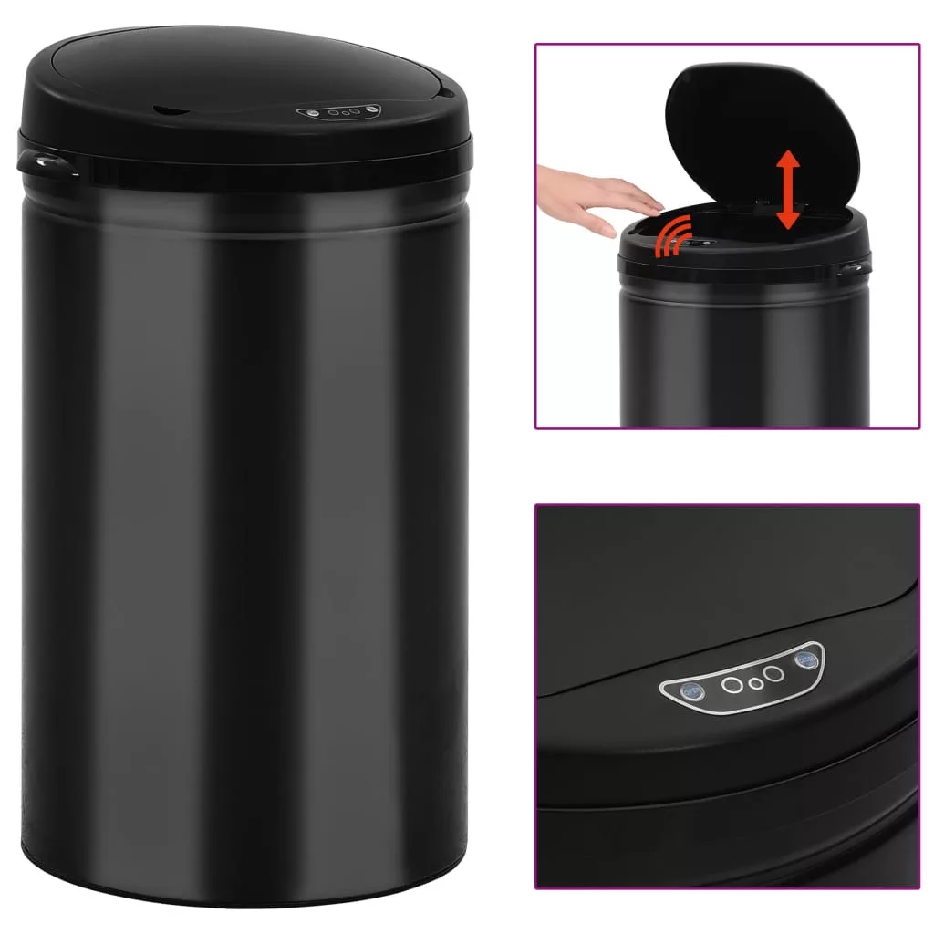 fekete automata érzékelős szénacél szemeteskuka 40 L