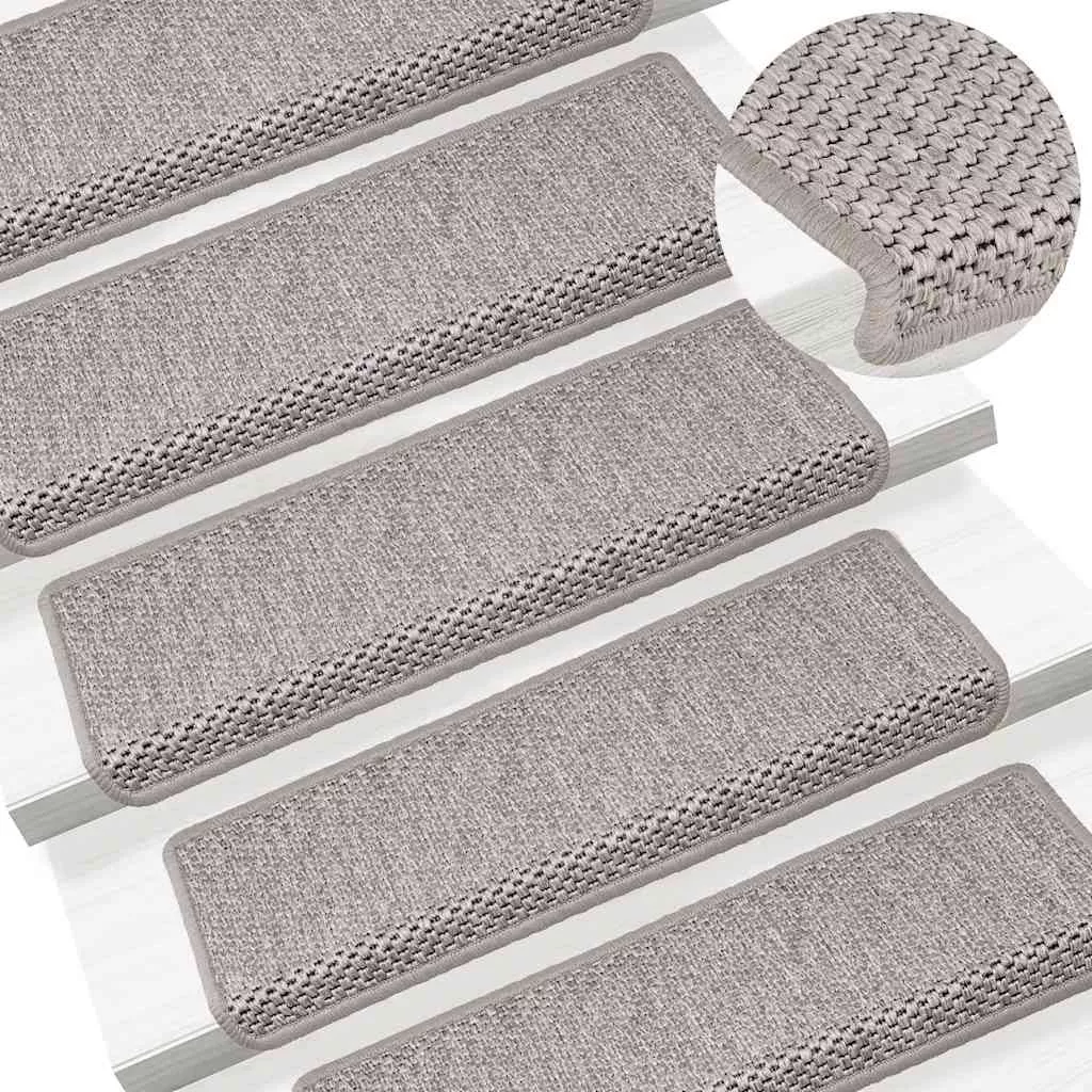 Ezek a lépcsőszőnyegek nemcsak mutatós és dekoratív kiegészítői lesznek otthonának, de Önt is megóvják a megcsúszástól, amikor fel- vagy lefelé közlekedik a lépcsőn, miközben a lépcsőket is óvják a kopástól. A szőnyegek strapabíró, szizál hatású szövetből készültek, így hangszigetelők, csúszásmentesek, kényelmesek és melegek is. A lépcsőszőnyegek moshatóak, és kialakításuknak köszönhetően a lépcső elejét és tetejét is védik. A hátoldalon lévő öntapadó szalagok segítségével a szőnyegek könnyen a lépcsőre tehetőek.