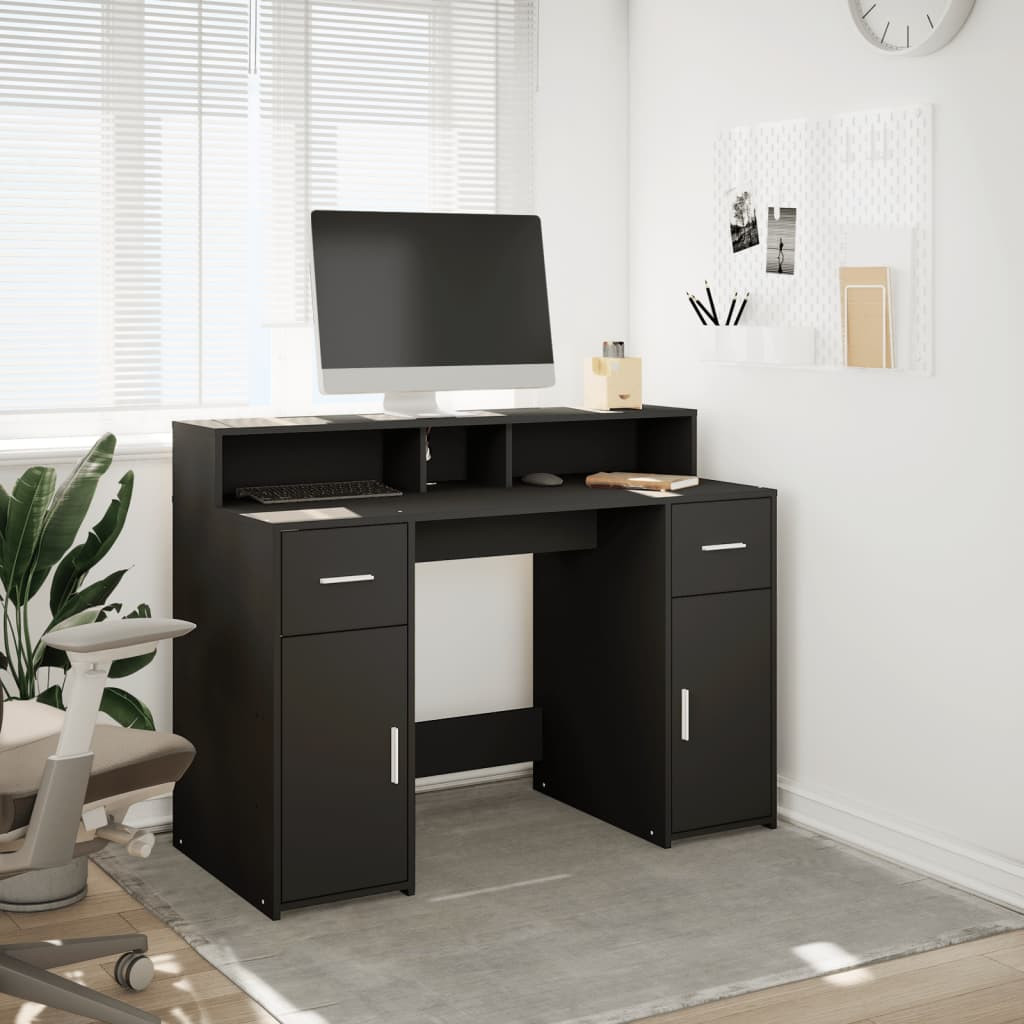 fekete szerelt fa íróasztal LED-világítással 120 x 55 x 91 cm