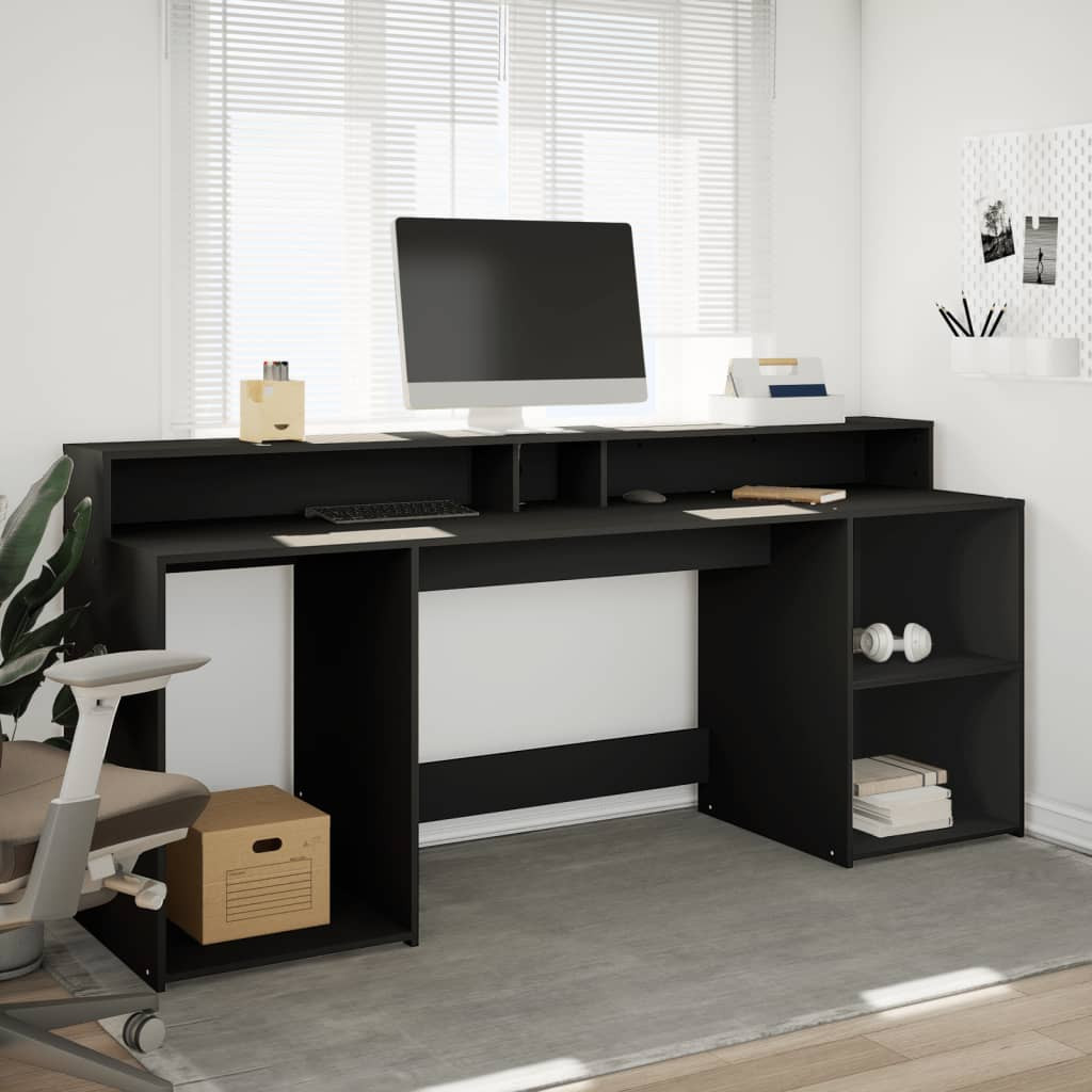 fekete szerelt fa íróasztal LED-világítással 200 x 55 x 91 cm
