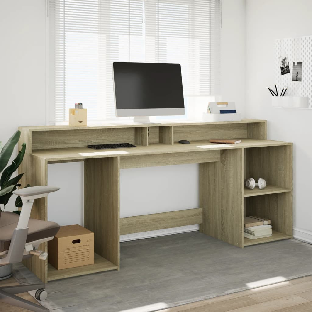 sonoma tölgy színű szerelt fa íróasztal LED-ekkel 200x55x91 cm