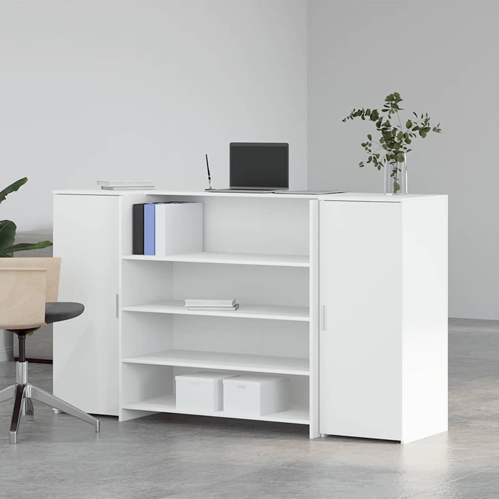 fehér, rétegelt fa recepciós asztal 180 x 50 x 103,5 cm