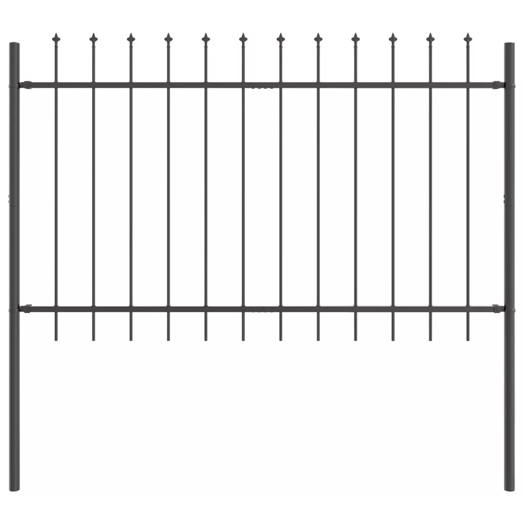 Kerti kerítés lándzsás tetővel, szürke, 13,6x1,2 m, acél