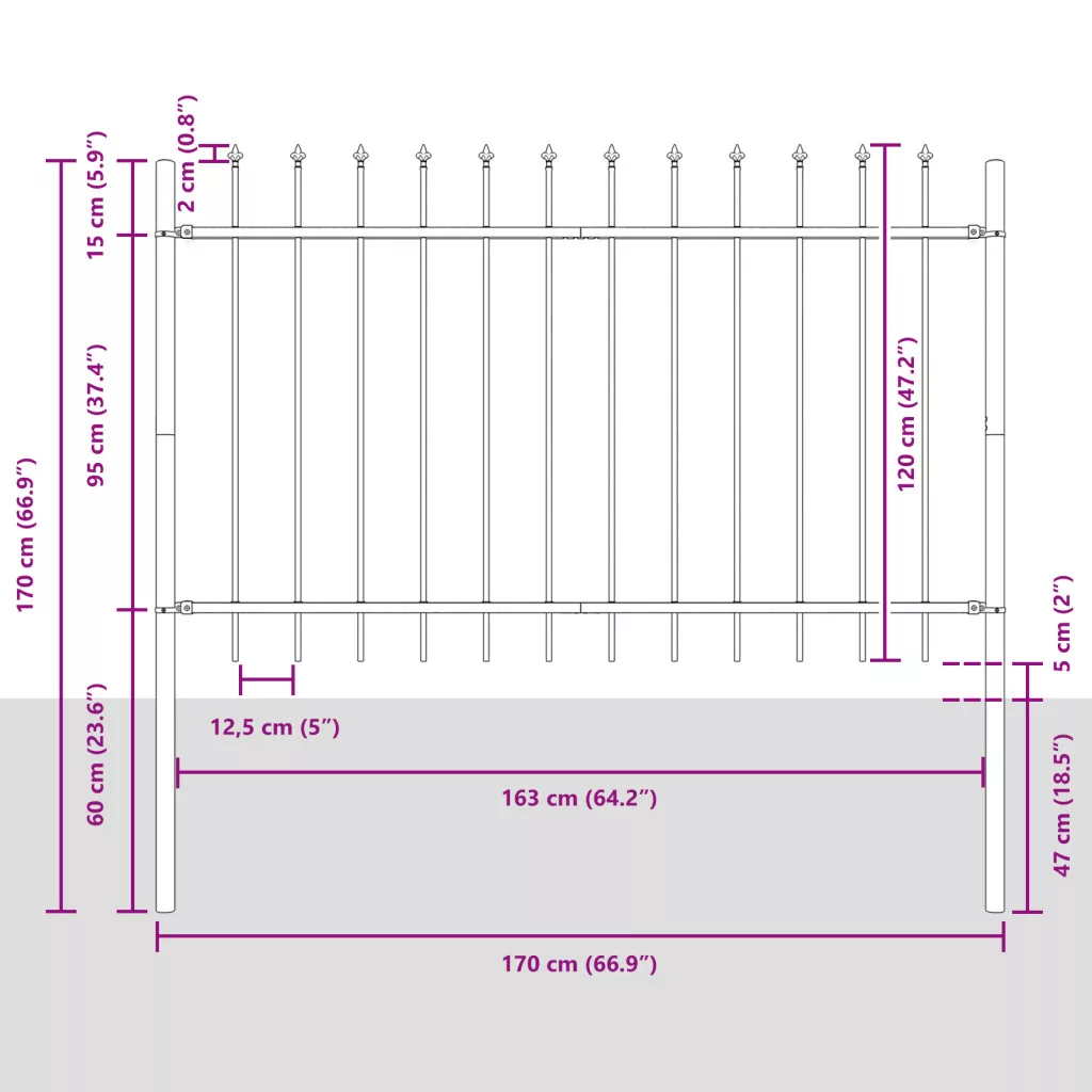 Ez a szürke fém kertkerítés készlet stílusos és tartós, tökéletes kültéri használatra. Kemény porszórt acélból készült, remekül mutat kertekben és teraszokon, csodás megjelenést adva, miközben funkcionális határokat teremt. Ezek a kerítéselemek könnyen telepíthetők, csak néhány alap szerszámra és pár órára van szükséged. Korrózióálló bevonataik védik az esőtől és a napsütéstől, és UV-állóak, így hosszabb élettartamot biztosítanak. A szilárd szürke szín modern, ami jól beilleszkedik a különböző kertstílusokba, tehát rugalmas választás bármely háztulajdonosnak. Kültéri használatra tervezték, ellenállnak a szélsőséges időjárásnak, biztosítva, hogy a kerted vagy teraszod szépen legyen elkerítve. Mérete: 170 cm x 3.4 cm, segít rendezett, jól definiált területeket létrehozni a kertedben.