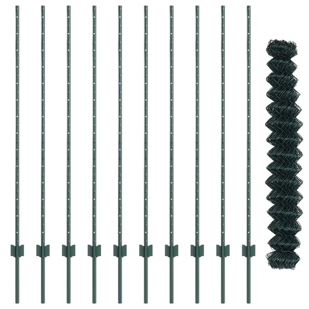 láncos kerítés 10 U oszloppal Zöld 1.4x10 m Acél