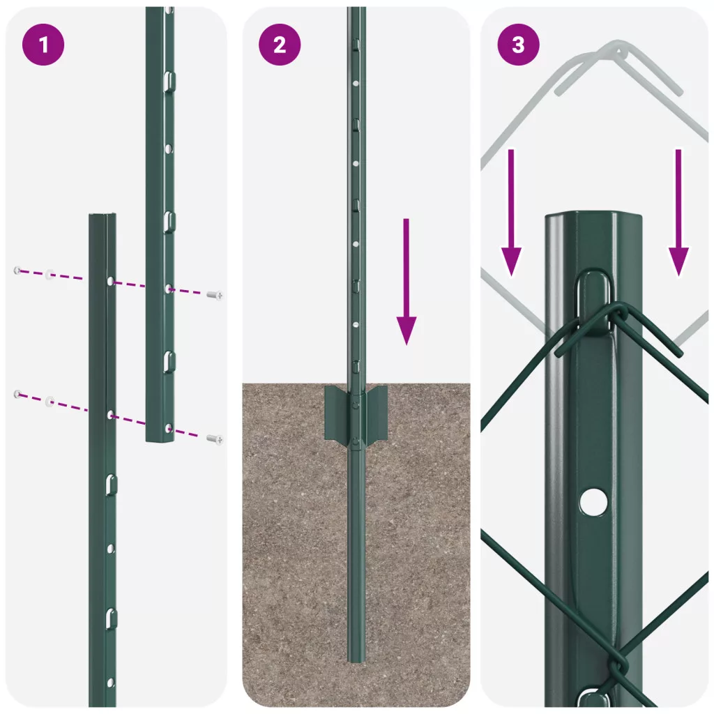 Láncos Kerítés 10 U Poszttal Zöld 1.6x10 m Acél