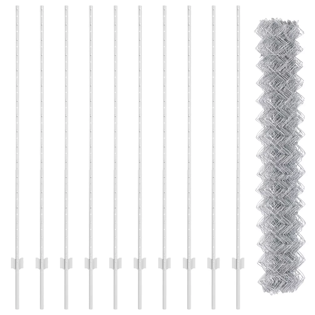 Ez a vidaXL horganyzott acél láncszem kerítés szett szuper frissítést ad a kültéri terednek, erős és sokoldalú dizájnjával. Az ezüst szín jól mutat, miközben biztonságos határt teremt a háziállatok és gyerekek számára. Tartós Felépítés: Horganyzott acélból készült, ez a kerítés időtálló és bírja az időjárást, ami megőrzi a megjelenését az idő múlásával. UV Ellenálló: A napsütéstől védve, ez a kerítés megőrzi világos ezüst színét, anélkül, hogy megfakulna, így feldobja a kültéri területed stílusát. Többféle Használat: Kiváló kerítéskerekhez, tulajdonjogok kijelölésére vagy területek megjelölésére. Rugalmassága miatt nagyszerű kiegészítője a kerterednek. Könnyű Összeszerelés: Egyértelmű utasításokkal és pár szerszámmal gyorsan beüzemelhető, elég csak egy csavarkulcsra és mérőszalagra. Teljes Szett: A csomag tartalmaz egy láncszem kerítés tekercset, oszlopokat, anyákat és alátéteket, szóval minden szükséges dolog benne van, függetlenül a kert méretétől.