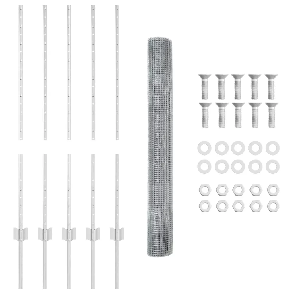 Ez a horganyzott acél tyúkdrót kerítés készlet pont azt adja, amire szükséged van ahhoz, hogy biztonságban tartsd a kültéri területeidet. Szilárd és praktikus, remek választás kertekhez vagy határvonalak megjelölésére. Ipari stílusával nemcsak hasznos, hanem jól is néz ki, biztonságos zónát biztosítva a gyerekeknek és háziállatoknak, miközben szebbé teszi a környezetet. Tartós felépítés: Horganyzott acélból készült, hogy hosszú távú teljesítményt nyújtson, bármilyen időjárási viszontagság mellett. UV ellenálló: Megőrzi a kinézetét és erejét még a napon is, így remek választás kültéri használatra. Többféle felhasználás: Tökéletes sokféle alkalmazásra, mint például a kert kerítése vagy ingatlanhatárok megjelölése, személyre szabva különböző kültéri igényekhez. Könnyű összeszerelés: Gyorsan beállítható egy ember által alapvető eszközökkel, mint egy fogó és kalapács. Teljes készlet: Tartalmaz egy tekercs tyúkdrótot és öt tartós oszlopot, készen áll a használatra.