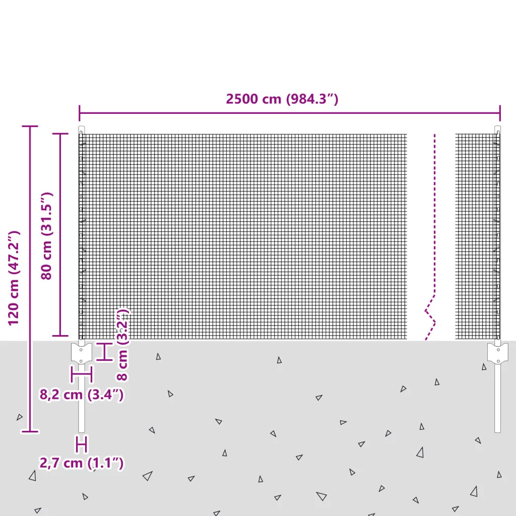 Hegesztett Drót Kerítés 11 U Oszloppal Ezüst 0.8x25 m Acél