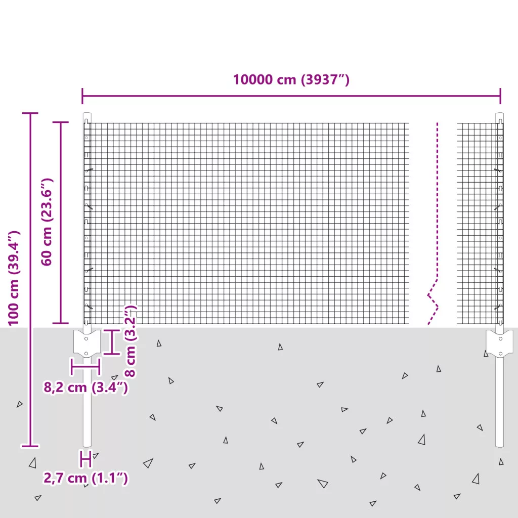 Horganyzott drótkerítés 44 U oszloppal Ezüst 0.6x100 m Acél