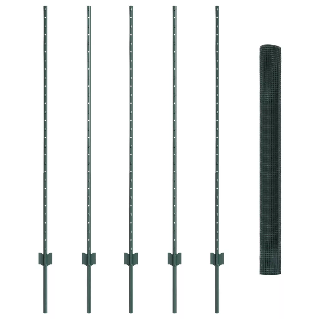 Horganyzott Vezeték Kerítés 5 U Oszloppal Zöld 1.4x10 m Acél