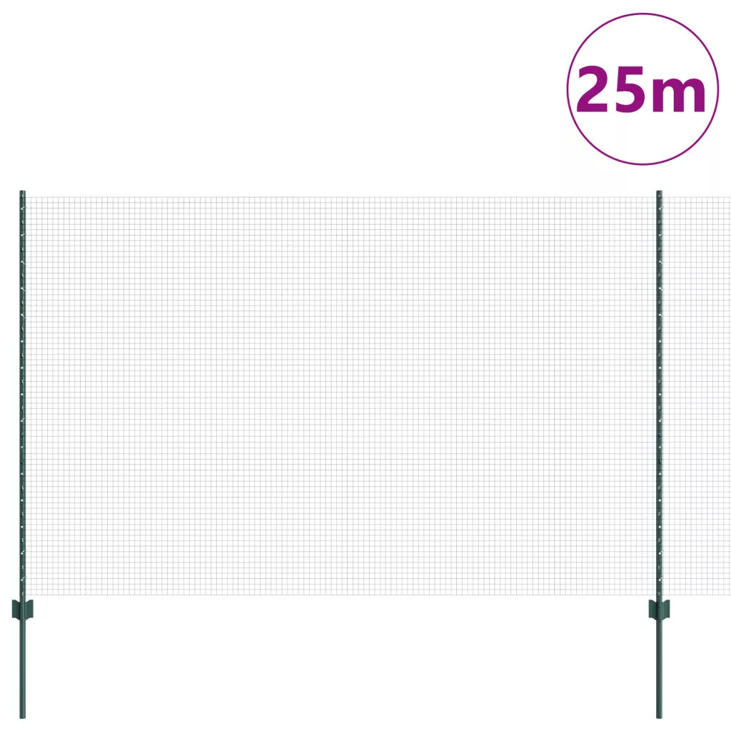 Hegesztett Háló Kerítés 11 U Oszloppal Zöld 1.5x25 m Acél