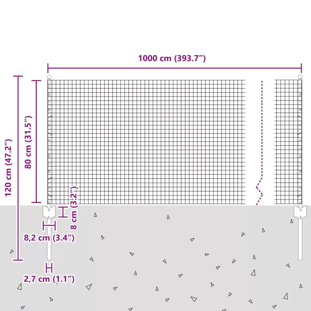 Hegesztett Drótkert 5 U Poszttal Szürke 0.8x10 m Acél