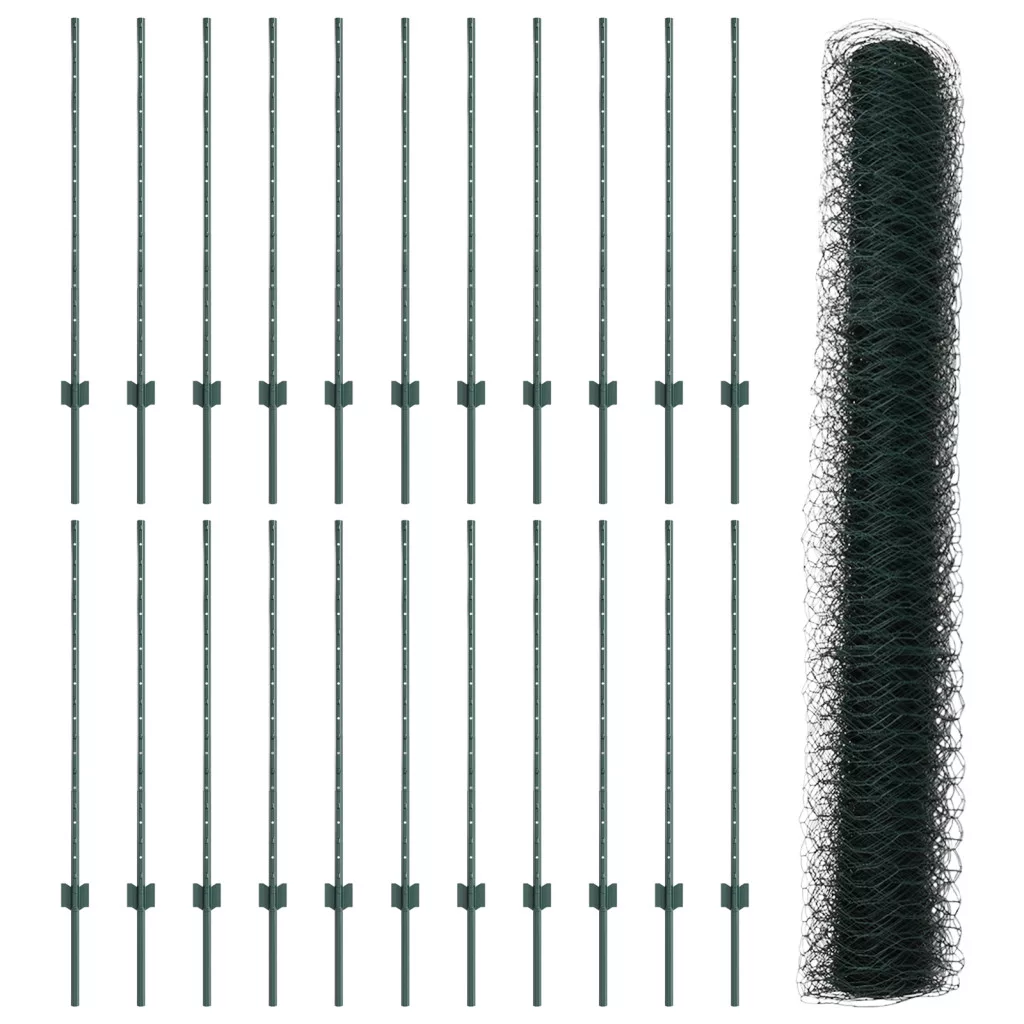 Kerítés Oszlopok 11 db U-csatornai Zöld 100 cm Acél