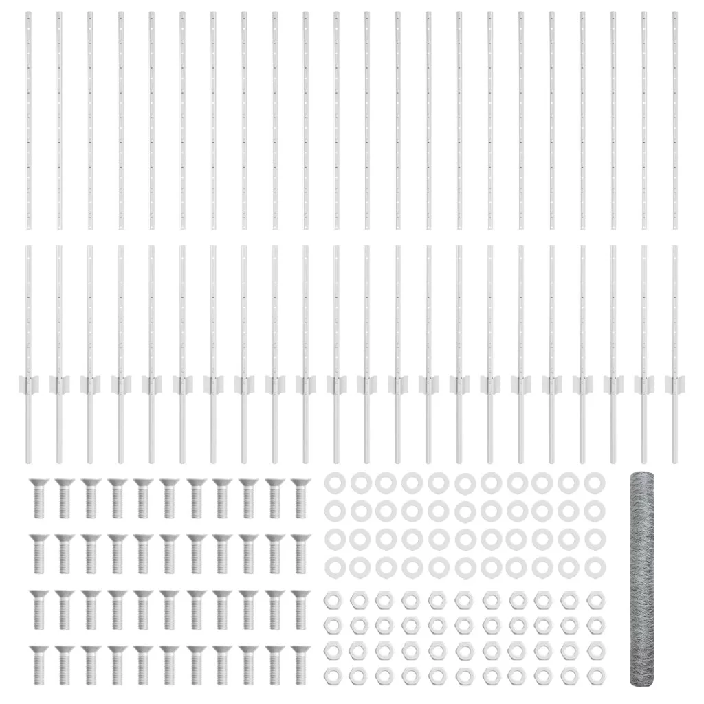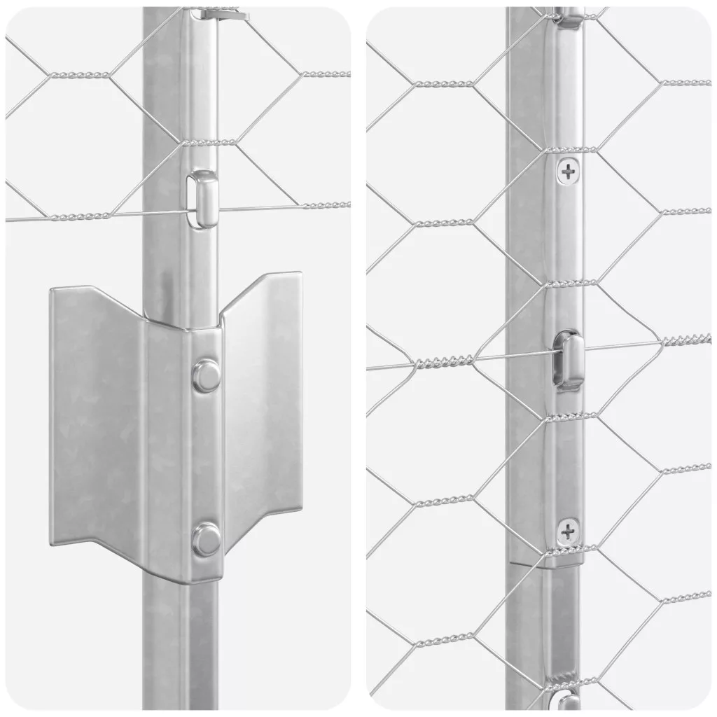 Ez a horganyzott acél hatszögletű kerti kerítés szett tökéletes a kültéri területek feldobására. Stabil és sokoldalú, a hatszögletű dizájn különleges csavart ad neki. Legyen szó háziállatok védelméről vagy a hely rendezéséről, ez a kerítés jól funkcionál és stílusos is. Tartós felépítés: Horganyzott acél; elég kemény különböző időjárási viszonyokhoz. UV-álló: Közvetlen napsütésben megőrzi a színét, a szürke felület frissebbnek tűnik. Többféle felhasználás: Kiválóan alkalmas kerti területek meghatározására vagy ingatlanhatárok kialakítására stílusos módon. Könnyű összeszerelés: Gyorsan beüzemelhető egy személy által, eszközökkel, mint kalapács és fogó. Teljes szett: Minden csomag tartalmaz egy tartós kerítés tekercset és robusztus oszlopokat, ideális nagyobb kültéri területekhez.
