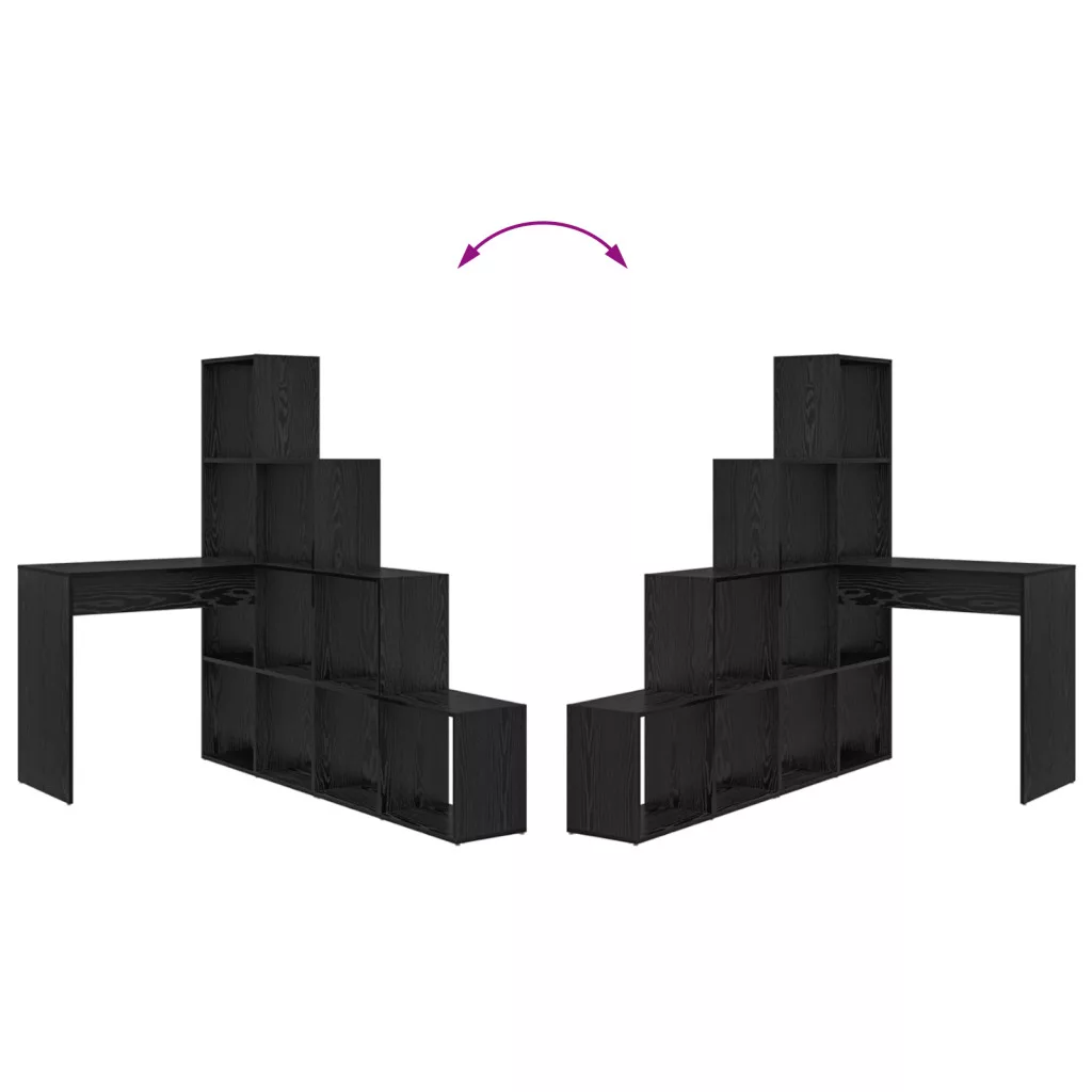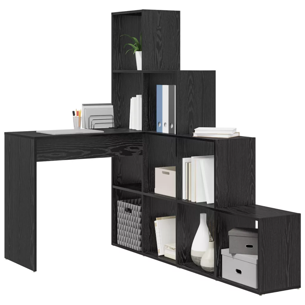 Sarokíróasztal polcokkal tárolóval Musta tammi 101,5 x 149,5 x 149,5 cm
