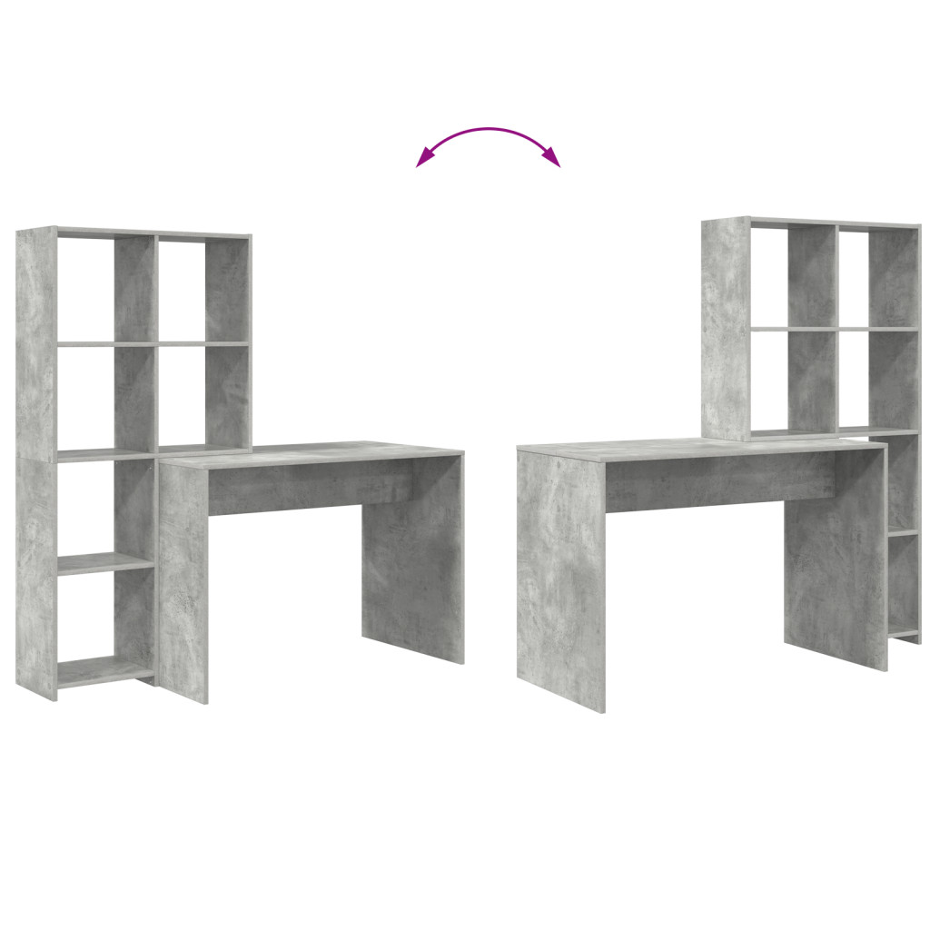 Asztal polcokkal tárolóval Beton szürke 138.5 x 55 x 143 cm Faanyag