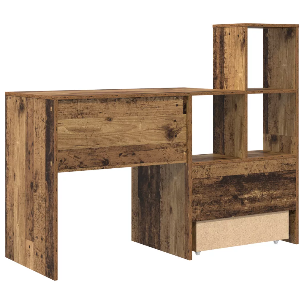 Asztal fiókkal polcokkal tárolóval Régi fa 131.5 x 50 x 106.5 cm Faanyag