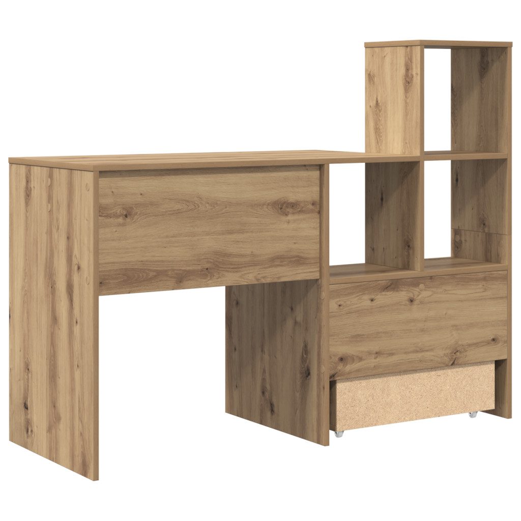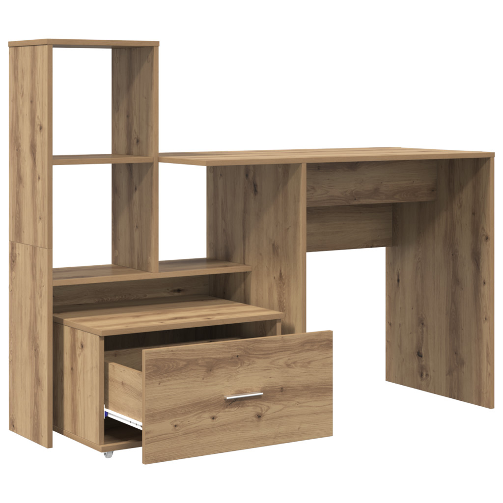 Asztal fiókkal polcokkal tárolóval kézműves tölgy 131.5 x 50 x 106.5 cm Faanyag