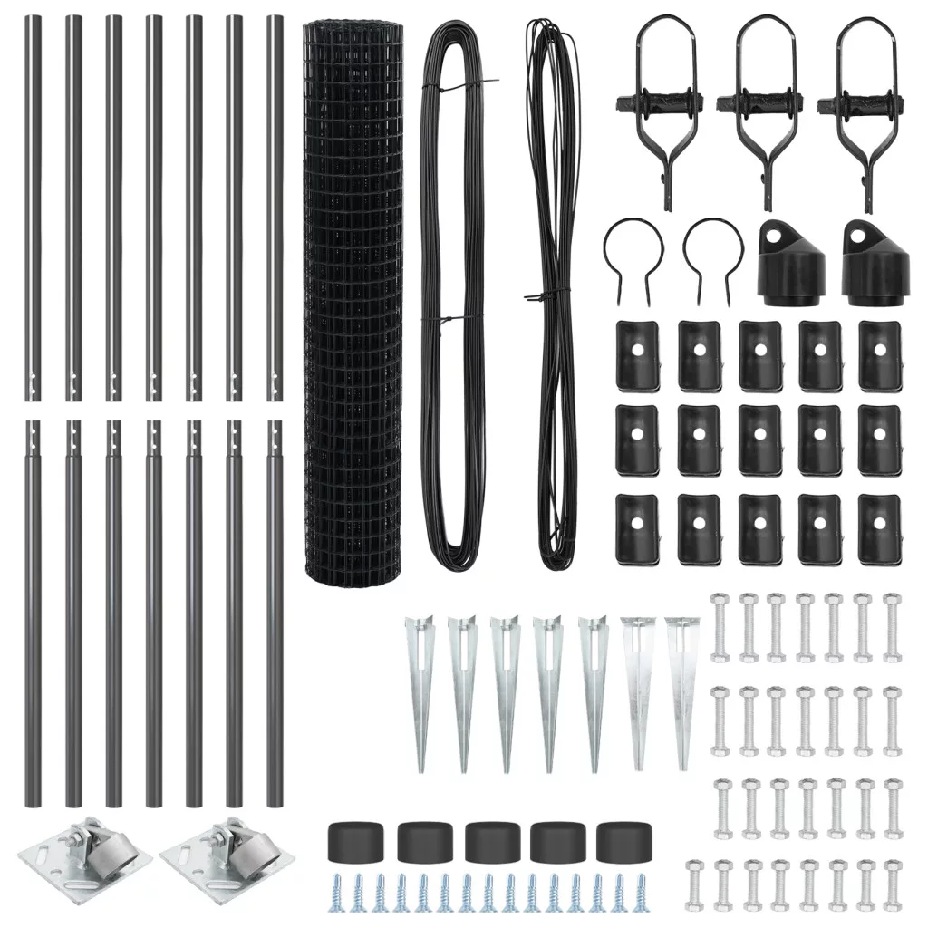 A vidaXL Euro Kerítés szuper módja a kültéri tered feldobásának, miközben biztonságban tartja azt. Készült, hogy bírja az időjárást, és menő szürke színben jön, ami jól passzol az ipari megjelenéshez. Tartósság: A vidaXL Euro Kerítés erős, így bírni fogja az időjárást, megbízható választás a kerítési feladatokhoz. UV-álló: UV-károsodás ellen készült, így hosszú időn át megőrzi a színét és formáját. Design: Az ipari matt felület nemcsak mutatós, hanem jól illik bármely kültéri területhez is. Sokoldalú felhasználás: Tökéletes mindenféle használatra – területek kijelölésére és hálós szerkezetek támasztására, fedezi a háztulajdonosok széleskörű igényeit. Teljes csomag: Tartalmaz egy kerítés tekercset, drótot, cölöp rögzítőket és rögzítőket, így könnyen felállítható és problémamentes.