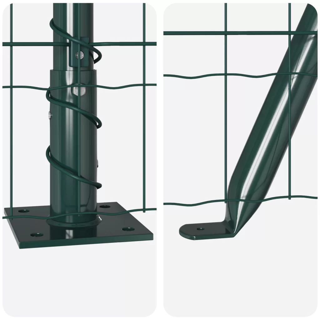 A vidaXL Euro Kerítés tökéletes megoldás a kerted felújítására, miközben a biztonságot is megtartja. Készült, hogy bírja az időjárást, és egy szép zöld színben érkezik, ami feldobja a kültéri tereid. Tartósság: A vidaXL Euro Kerítés úgy van tervezve, hogy bírja a különféle időjárásokat, éveken át megbízható kerítési megoldást kínál. Erős szerkezete ellenáll a korróziónak és a kopásnak. UV Ellenálló: Ez a kerítés úgy lett tervezve, hogy bírja az UV-sugarakat, így ideális napsütötte helyekre. Idővel megőrzi a színét és stabilitását. Design: A sima porszórt bevonat nemcsak jól néz ki, hanem szépen illik bármilyen kerthez vagy kültéri környezethez. Sokoldalú Használat: Ez a kerítés sokféle felhasználásra alkalmas, a kertek határolásától a rácsos struktúrák támogatásáig, különböző háztulajdonosi igények kielégítésére. Alkalmazkodó formája megkönnyíti a beállítások közötti átkapcsolást. Teljes Csomag: A termék minden szükséges alkatrészt tartalmaz a telepítéshez, mint panelek, oszlopok, beton alap rögzítők, drót és csatlakozók, biztosítva a zökkenőmentes beállítást a helyed védelmére.