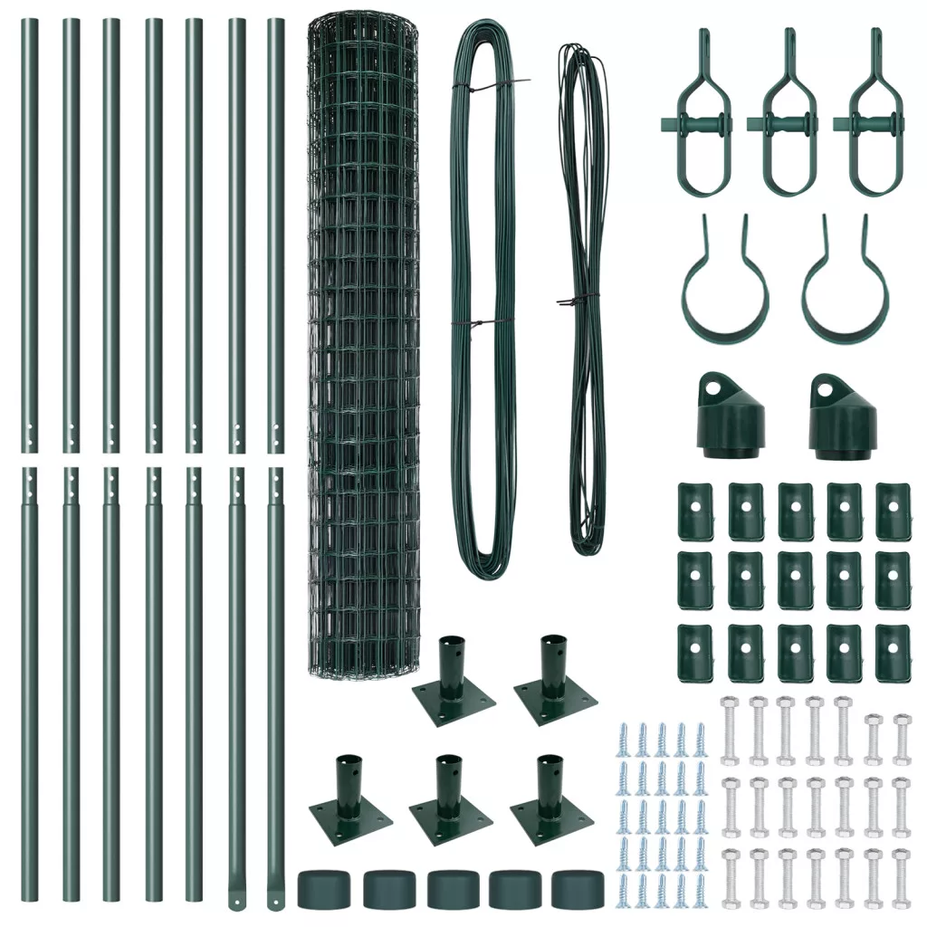A vidaXL Euro Kerítés tökéletes a kerted határainak keretezésére, és biztonságot ad. Strapabíró felépítése és szép zöld színe miatt ez a legjobb választás kültéri használatra. Tartósság: Ezt a vidaXL Euro Kerítést horganyzott acélból és dróthálóból készítették, így bármilyen időjárást kibír, hosszú ideig, anélkül, hogy rozsdásodna. UV Védelem: Az UV-álló anyagok miatt a kerítés megőrzi élénk zöld színét, így megbízható határt ad napsütötte helyeken. Design: A porszórt felület modern megjelenést biztosít, ami jól illik a kertbe vagy kültéri térbe. Sokoldalú Használat: Rugalmas jellege miatt ideális határvonalak jelölésére, növények védésére vagy hálószerkezetek támasztására. Teljes Csomag: Ez a szett mindent tartalmaz, amire szükséged lesz az összeszereléshez, beleértve az oszlopokat, kerítéselemeket, beton alap rögzítőket és drótköteleket az egyszerű telepítéshez.