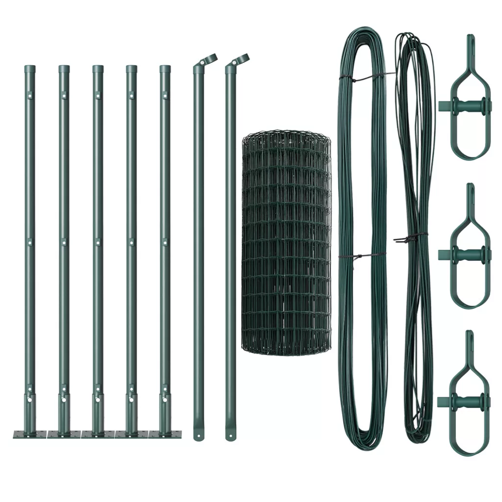 A csomag tartalmazza: Kerítésoszlopok, háló, vezeték, tartók