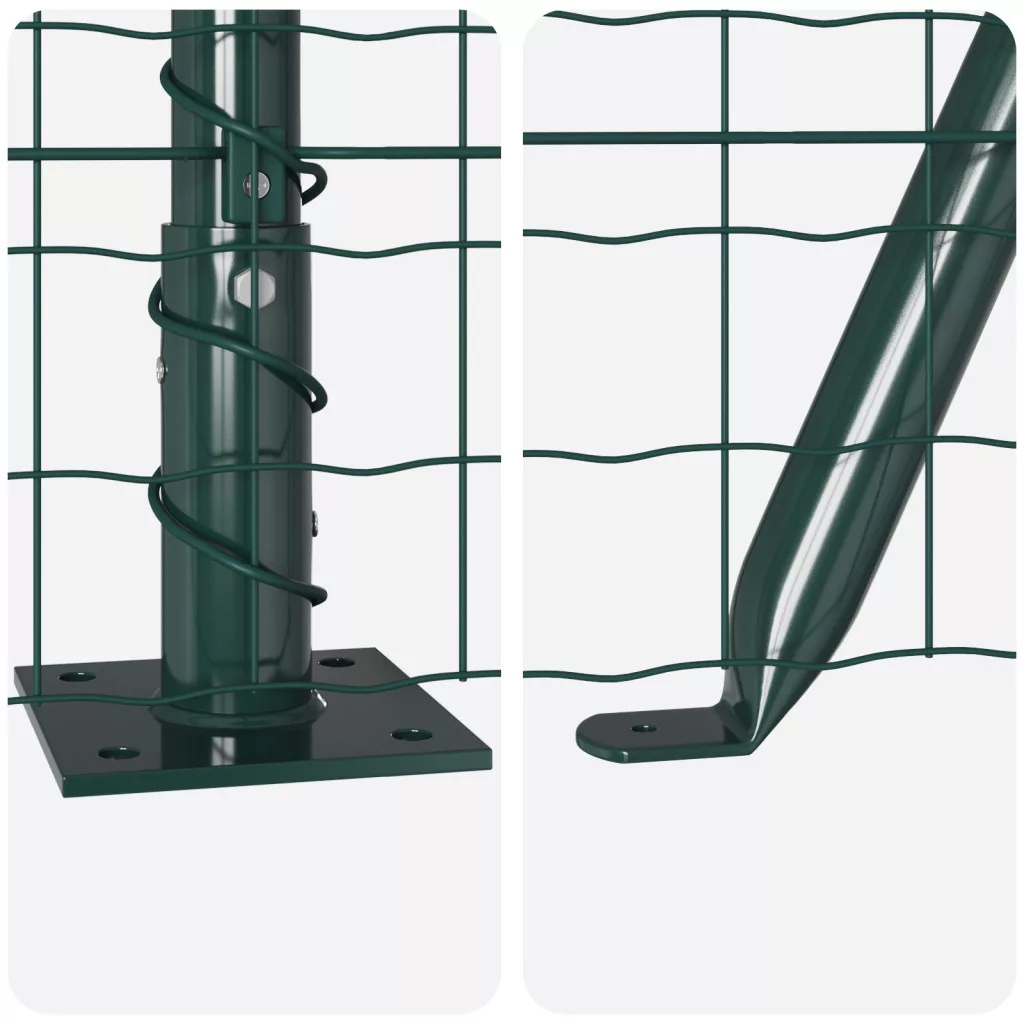A vidaXL Euro Kerítés 13 flangás oszlopaival menő módja, hogy feldobd a kerítéseid határait, miközben mindent biztonságban tartasz. Az időjárásálló, masszív kerítés klassz zöld színben jön, ami feldobja a kültéri teredet. Tartósság: Horganyzott acélból készült, hogy bírja az időjárást, így hosszú élettartamot biztosít. UV Ellenálló: Felépítése védi az UV károktól, megtartva a szép zöld színét és szerkezetét, még napos helyeken is. Design: A modern matt bevonat remekül passzol bármilyen kültéri stílushoz, a funkciókat és a friss megjelenést ötvözve. Sokoldalú Használat: Kiválóan használható a kertek megerősítésére, a határok kijelölésére vagy a rácsos struktúrák támogatására. Teljes Csomag: Ez a kerítési rendszer mindent tartalmaz, amire szükséged van a zökkenőmentes beállításhoz, beleértve kerítés paneleket, oszlopokat és minden eszközt.