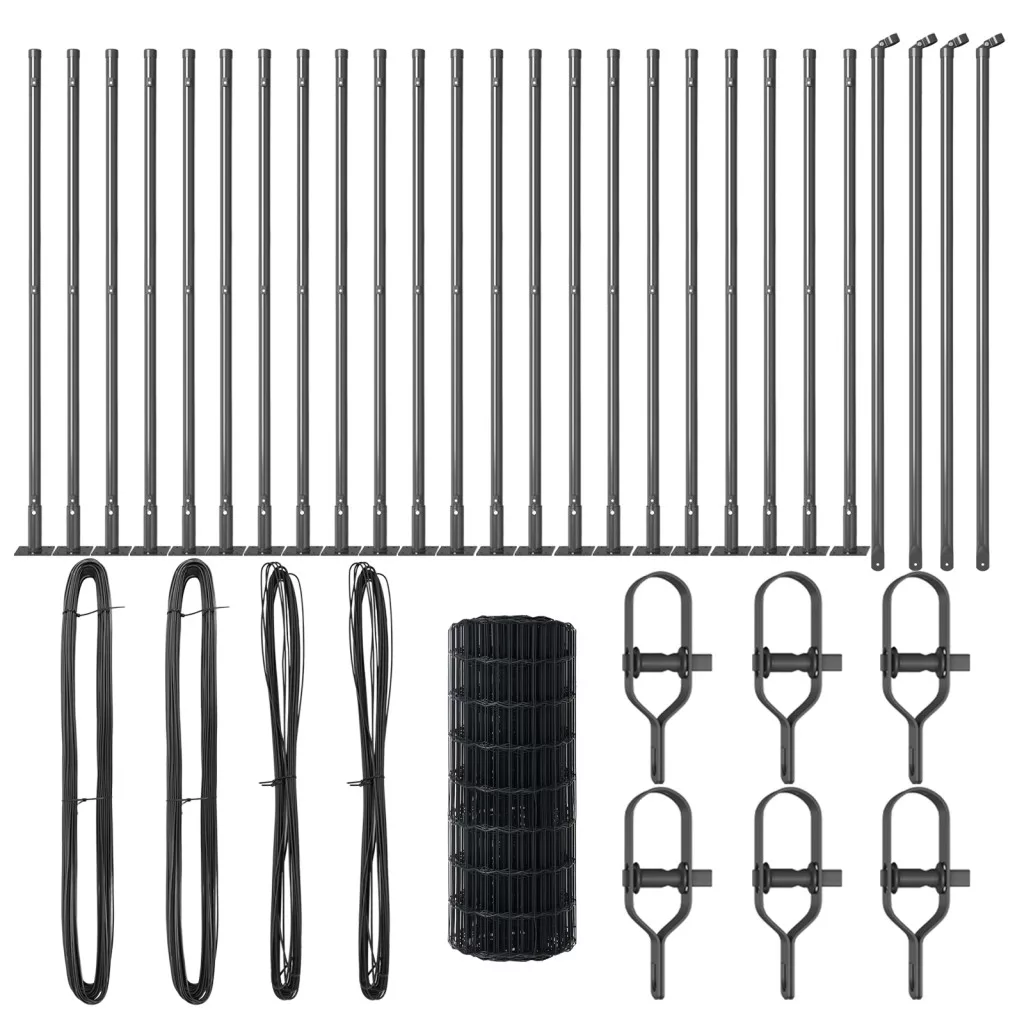 A vidaXL Euro Kerítés egy menő módja a kerted határainak védelmére, miközben minden biztonságban marad. Tartós, stílusos szürkében érkezik, ami jól néz ki és praktikus is kültéren. • Tartósság: A vidaXL Euro Kerítés úgy van kialakítva, hogy bírja az időjárást, megbízható választás évekig. Az anyagai korrozióállóak. n• UV Ellenálló: Ez a kerítés bírja a napot, így nem fakul ki. n• Design: A modern porszórt bevonat jól néz ki, bármely kertbe illik és praktikus is. n• Sokoldalú Használat: Ideális a kerítésekhez és a tulajdonhatárokhoz, rugalmasan alkalmazható. n• Teljes Csomag: Mindent tartalmaz, amire szükséged van—oszlopokat, hálókat, beton alapot és feszítőket—így gyorsan összeszerelheted.