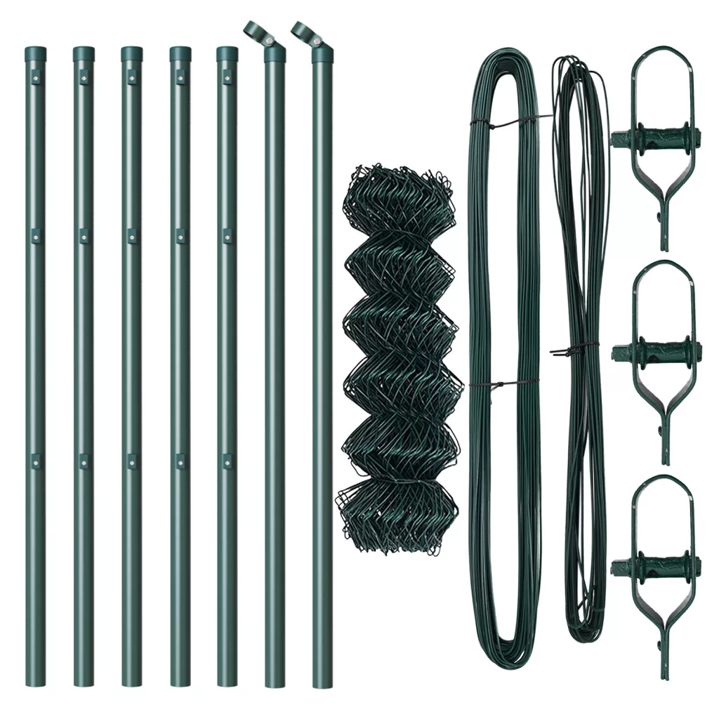 Láncfal 7 oszloppal 0.4x10 m Galvanizált acél Zöld