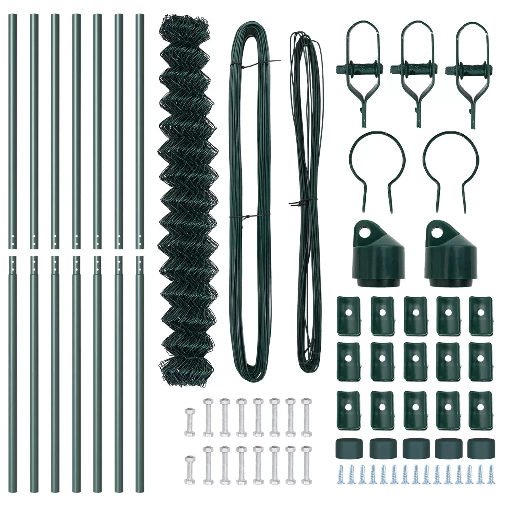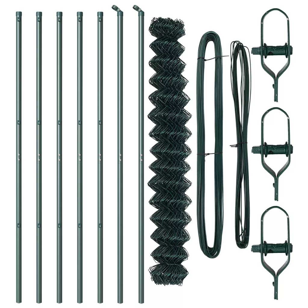 Láncos Kerítés 7 oszloppal 1.6x10 m Horganyzott Acél Zöld