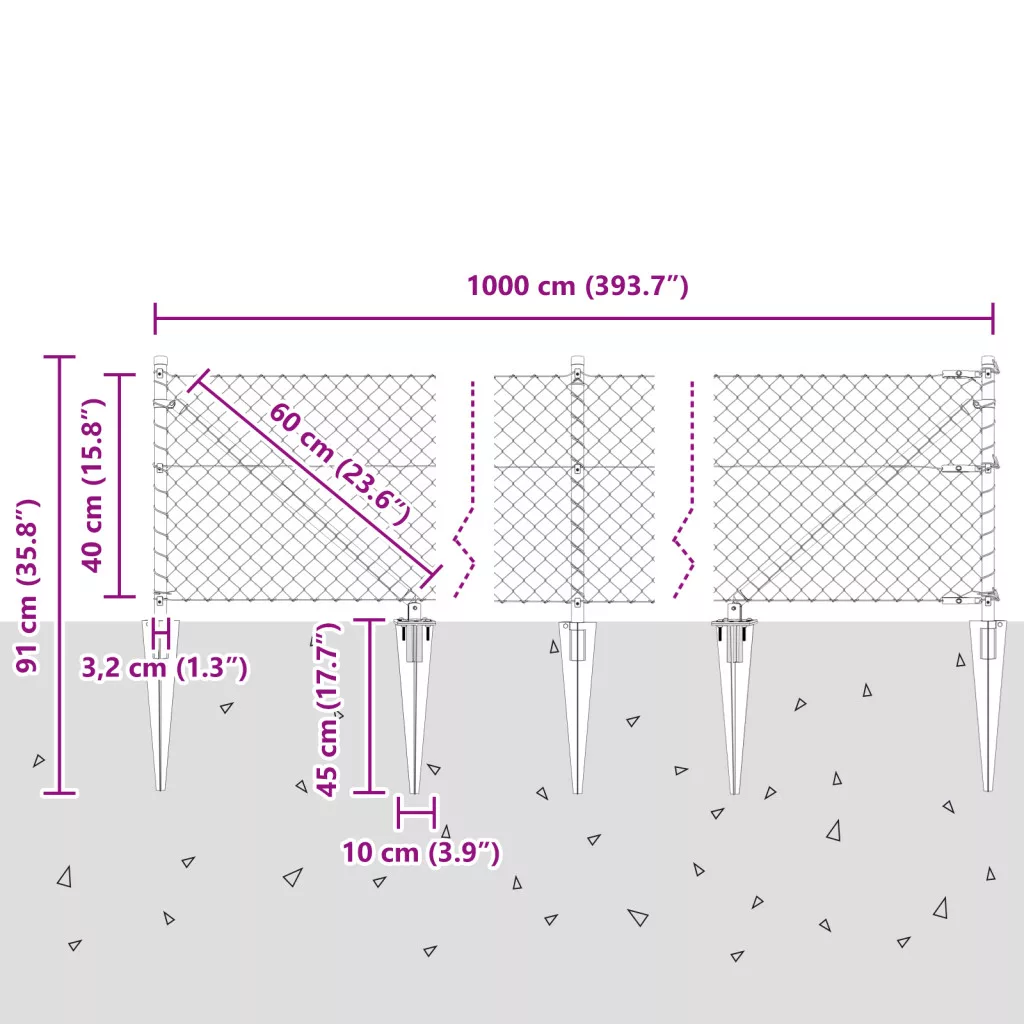 Lánckerítés 7 tüskeoszloppal 0.4x10 m Horganyzott Acélból