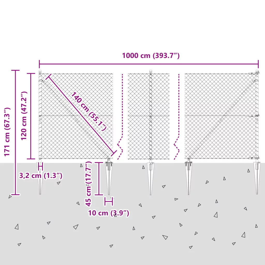 Ez a lánckerítés szuper választás, ha biztonságos határvonalat akarsz kialakítani a kültéri területeiden, összekötve a biztonságot a praktikummal. Tartós horganyzott acélból készült, és stílusos szürke színben kapható, ami szépen illik a kerteredhez vagy a kültéri részedhez, miközben erős támogatást ad. Legjobb tartósság: Erős horganyzott anyagokból készült, ez a kerítés kibírja az időjárási változásokat, és hosszú távon is megőrzi az erejét. Stílusos kialakítás: A sima, horganyzott felület tovább növeli a tartósságot, miközben rendezett megjelenést kölcsönöz. Universális használat: Kiváló kertekhez, udvarokhoz és nyílt terekhez, ez a kerítés sokféle igényhez igazodik. Cölöp talajfixálás: Ez a funkció stabilan rögzíti a kerítést, ellenáll a szél- és nyomáspróbáknak, a fokozott biztonság érdekében. Könnyű összeszerelés: A megfelelő szerszámokkal gyorsan és egyszerűen összeszerelhető, lehetővé téve a projekted zökkenőmentes befejezését.