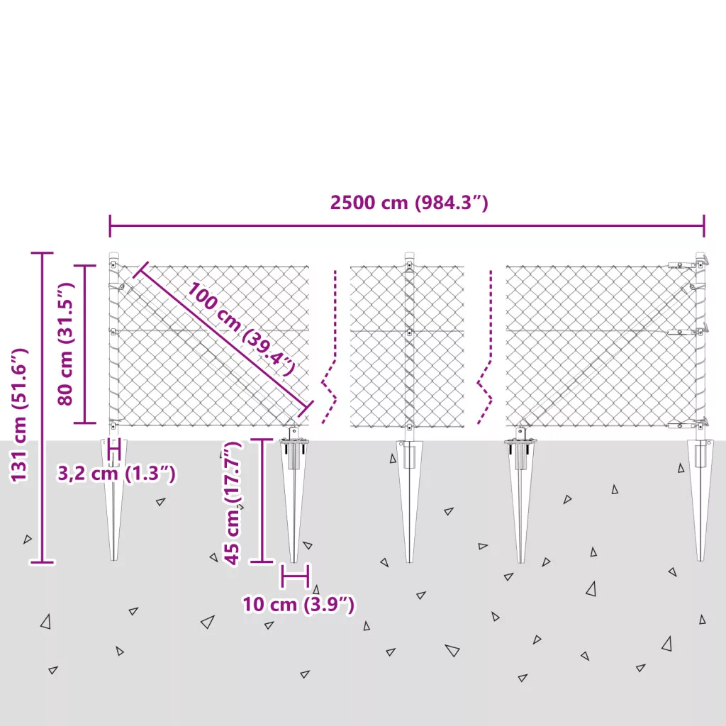 Láncos Kerítés 13 Szegekkel 0.8x25 m Galvanizált Acél