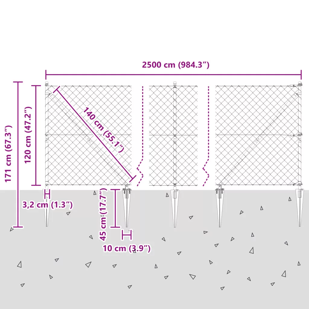 Lánckerítés 13 Spike oszloppal 1.2 x 25 m Galvanizált acél