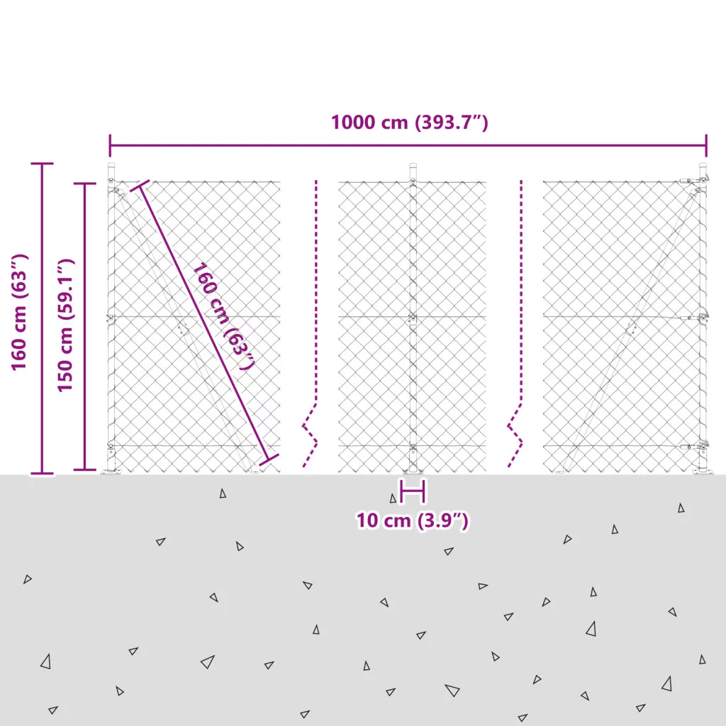 Láncos kerítés 7 Félláncos oszloppal 1,5 x 10 m Horganyzott acél