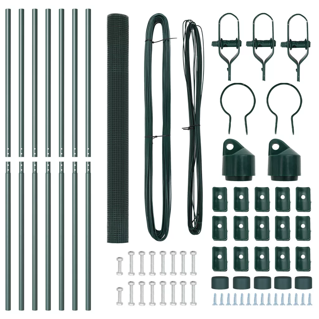 A vidaXL hegesztett drótkerítés remek választás a kültéri terek védelmére. Elég tartós és szép zöld színű. Szuper erős, így maximális biztonságot ad. Kiválóan alkalmas kertekhez és ingatlanokhoz. Tartós szerkezet: Erős acél, ami bírja az időjárást. Esztétikus megjelenés: A festett felület jól néz ki és sokáig bírja. Könnyű összeszerelés: Csak kalapácsra és pörölyre van szükség, és két ember gyorsan dolgozhat. Teljes csomag: 7 posztot és drótot tartalmaz a teljes kerítésmegoldásért. Remek akadályokhoz: Tökéletes kertekhez és ingatlanokhoz, biztonságosan elválasztva a területeket, miközben jól mutat.