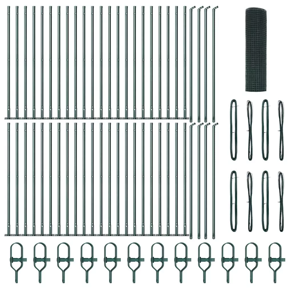 Hálós Kerítés 13 Flanged Posts Zöld 0.6x100 m Acél