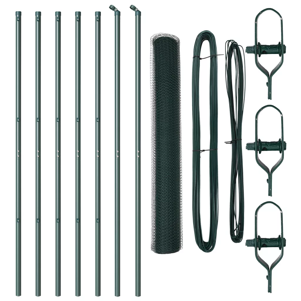 Ez a vidaXL hatszögletű kerítés szuper választás a kertek és kültéri terek körbekerítésére. Élénk zöld színével és robusztus fémből készült felépítésével szépít a tájban, miközben tartós és biztonságos marad. Tartós anyag: Porszórt fémből készült, ez a kerítés szett jól állja az időjárás viszontagságait, így hosszú ideig kitart és védelmet nyújt a kültéri területeidnek. Tökéletes kertekhez: A modern zöld szín jól passzol a természethez, és megbízható határt ad a kisállatoknak és gyerekeknek, hogy fokozza a kerted varázsát. Egyszerű összeszerelés: Ez a praktikus megoldás lehetővé teszi, hogy gyorsan összerakd a kerítést, csak két ember kell, néhány alap szerszámmal, mint egy kalapács és mérőszalag. Sokoldalú méretek: Ez a kerítés szett 10 x 1 m-es dimenzióval érkezik, jól illik különböző kertekhez és méretekhez. Teljes készlet: Minden szükséges elemet tartalmaz, beleértve az oszlopokat, hálós tekercseket, köteleket és csatlakozóelemeket az egyszerű telepítéshez.