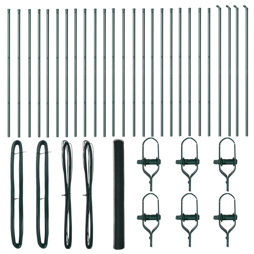 A vidaXL Hatszögalakú Kerítés megbízható megoldást kínál kertek és kültéri terek elkerítésére. Élénk zöld színe és szilárd felépítése nemcsak jól néz ki, hanem tartós is, így tökéletes kültéri használatra. Tartós anyag: Az erős porszórt acélból készült kerítés bírja az időjárást, így időtálló, és biztonságban tartja a kültéri tereidet. A sima, időjárásálló felület fokozza a tartósságát. Tökéletes kültéri helyekhez: Az élénk zöld szépen mutat a kertben, szilárd akadályt biztosítva a háziállatoknak és gyerekeknek, ezzel fokozva a kültéri területed szépségét. Könnyű összeszerelés: Gondosan megtervezve a felhasználó kényelme érdekében, ez a szett könnyedén összeállítható pár alap szerszámmal, lehetővé téve, hogy gyorsan fellépj a kerítést, és élvezd a teredet. Minimalista dizájn: A letisztult, egyszerű megjelenésével, ez a kerítésszett stílusos és elegáns kiegészítője bármilyen kültéri területnek. Teljes készlet: Ez a szett minden szükséges elemet tartalmaz, mint kerítésoszlopok, háló és szerelési anyagok, így minden megvan a zökkenőmentes telepítéshez.