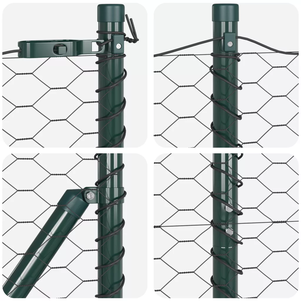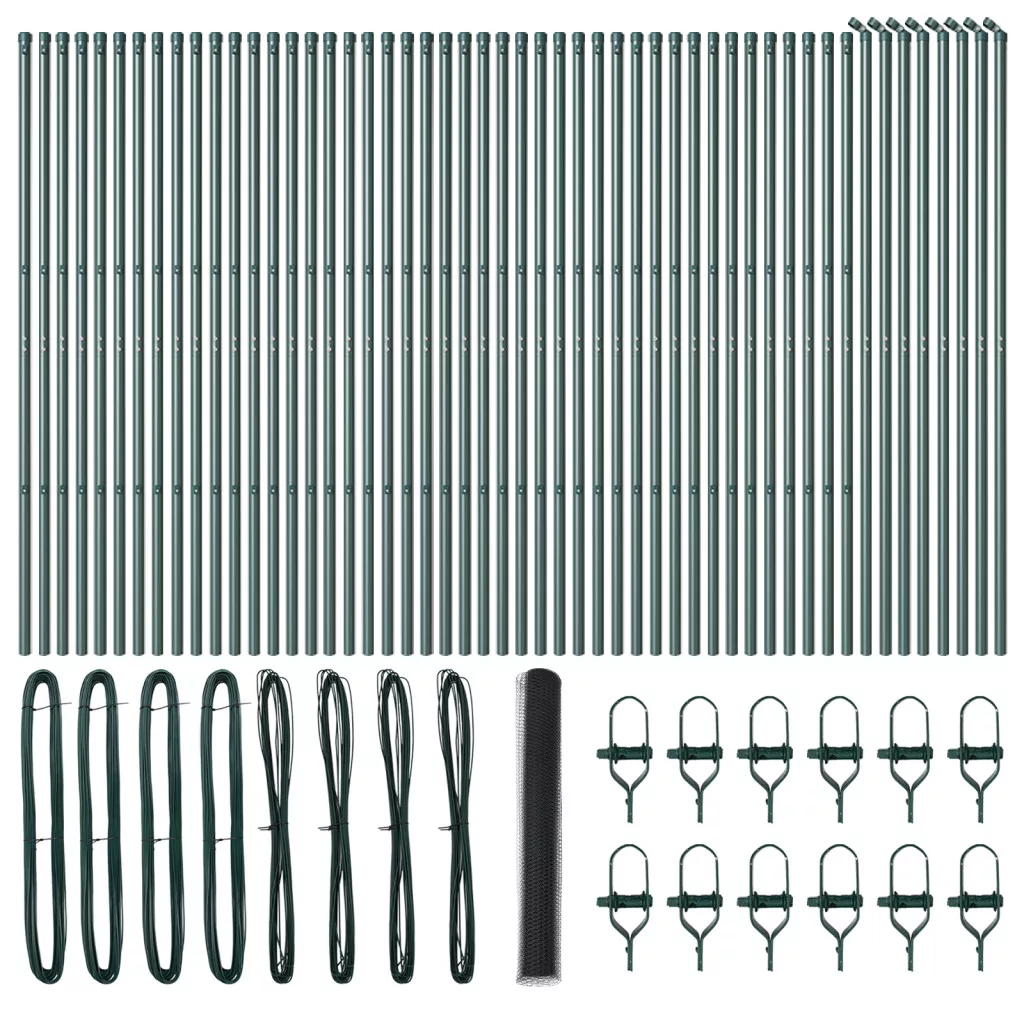 Ez a kültéri kerítés szett szuper megoldás a kertek és kültéri terek körbekerítésére. Élénk zöld színével és szilárd felépítésével jól néz ki bármilyen kertben, míg biztosítja a tartósságot és biztonságot - tökéletes bármilyen kültéri projekthez. Tartós anyag: Erős porszórt acél és UV-álló, ez a kerítés szett elég bírja az időjárást, így tartós védelmet nyújt kültéri helyeinek. Tökéletes kertekhez: A gyönyörű zöld szín jól passzol a természethez, miközben biztonságos akadályt kínál a kutyák és gyerekek számára, növelve a kerted vonzerejét. Könnyű összeszerelés: Azonnal kényelmet adva, ez a szett könnyedén összerakható két emberrel, alap szerszámokkal, mint egy kalapács, pöröly és mérőszalag, így hamar élvezheted a kültéri területed. Teljes készlet: Ez a kerítés szett mindent tartalmaz, amire szükséged van - 5 kerítés panelt, 5 oszlopot és rögzítőelemeket - biztosítva, hogy zökkenőmentes legyen a beállítás.