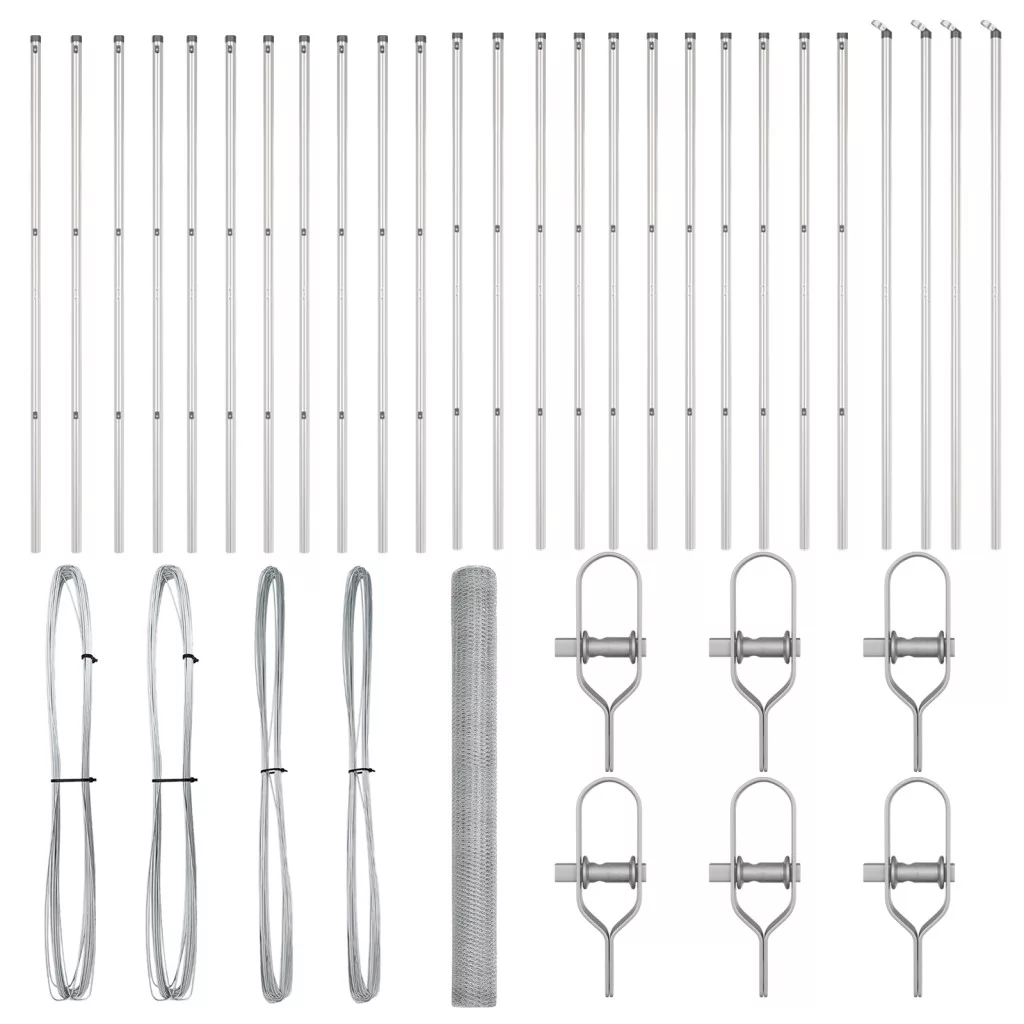 Ez a Kültéri Kerítési Készlet a legjobb megoldás kertek és kültéri terek kerítésére. Stílusos horganyzott acél megjelenése és erős szerkezete remekül mutat bármilyen kültéri helyen, miközben biztonságban tartja a dolgaidat. Ezért ez a legjobb választás különféle felhasználásokhoz. Tartós Anyag: Horganyzott acélból készült, ez a kerítési készlet hosszú életű és megbízható védelmet nyújt kültéri területeidnek. UV- és vízállósága még tartósabbá teszi. Tökéletes Kertekhez: A divatos szürke szín szépen idomul a környezetedhez, erős határt képez a házikedvencek és gyerekek számára, növelve a kerted vonzerejét. Könnyű Összeszerelés: Az egyszerűség kedvéért gondosan tervezve, ezt a készletet két ember gyorsan összerakhatja alapvető szerszámok, mint például fúró, kalapács és mérőszalag használatával, lehetővé téve, hogy gyorsan felállítsd a kerítést és élvezd a kültéri teredet. Teljes Készlet: Minden szükséges elemet tartalmaz, beleértve a kerítésoszlopokat, hálótekercseket, klipeket és vezetékeket, biztosítva, hogy gördülékeny telepítést végezhetsz.